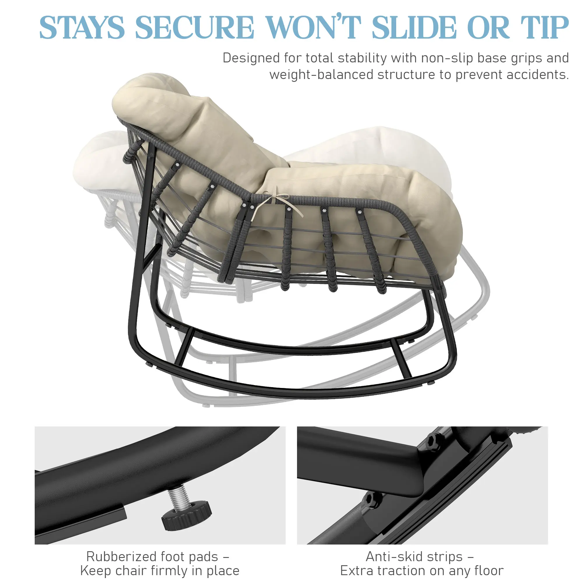 Outdoor Rocking Chair with Thick Cushion,450/550 lbs Capacity, Indoor Egg Rocking Chair with Adjustable Backrest for Backyard, Balcony, Living Room