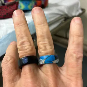 These rings are great at first but over time with normal wear and no chemicals introduced to them to cause this they begin to kinda dry out and shrink . They will actually shrink down they are so tight you can’t hardly get them off . Now with that being said I really like the pattern and feel of the ring for the first few months and I’m on my 3rd one . Groove customer service has always taken care of me! I just wish they wouldn’t shrink and get hard and dried out . Just my 100% honest review