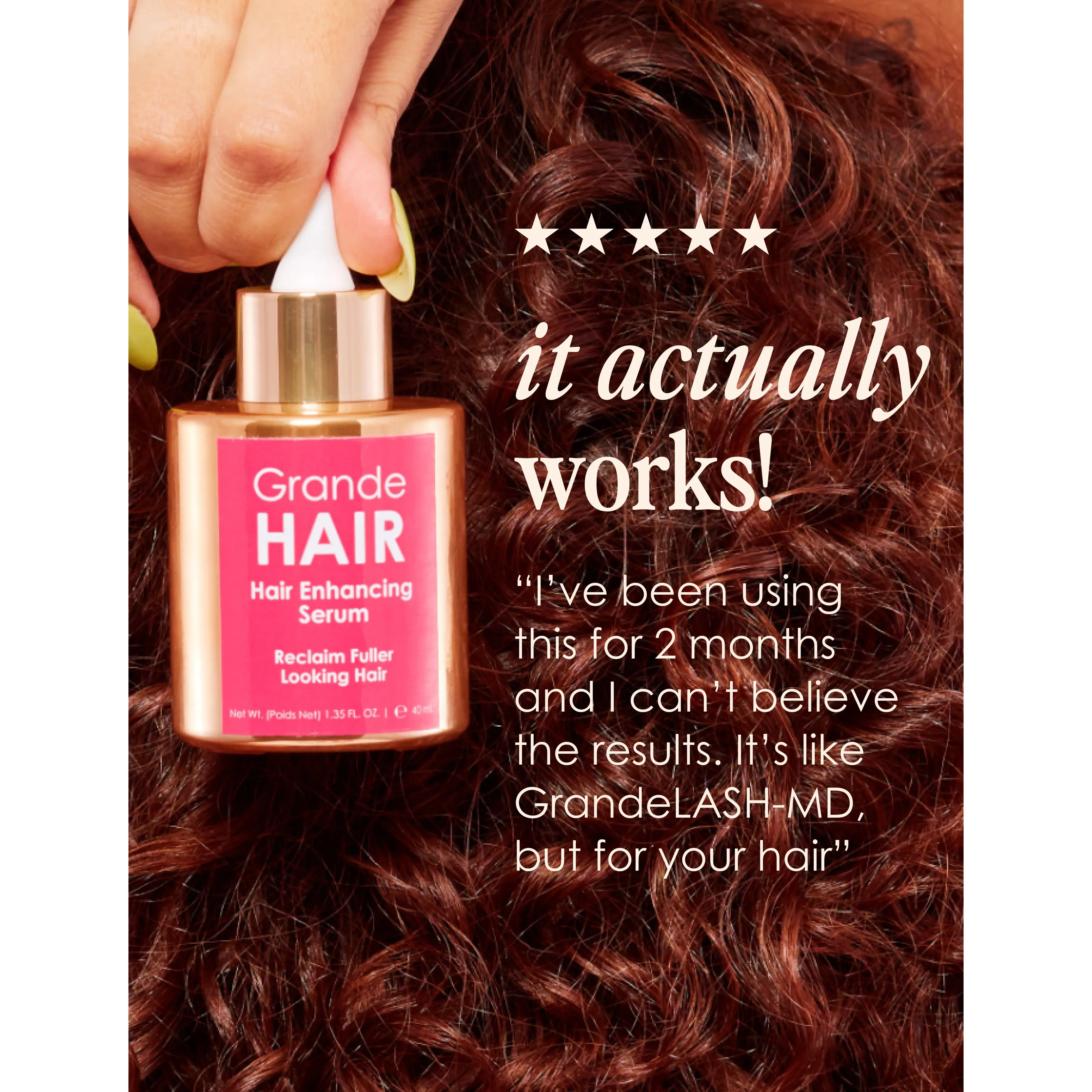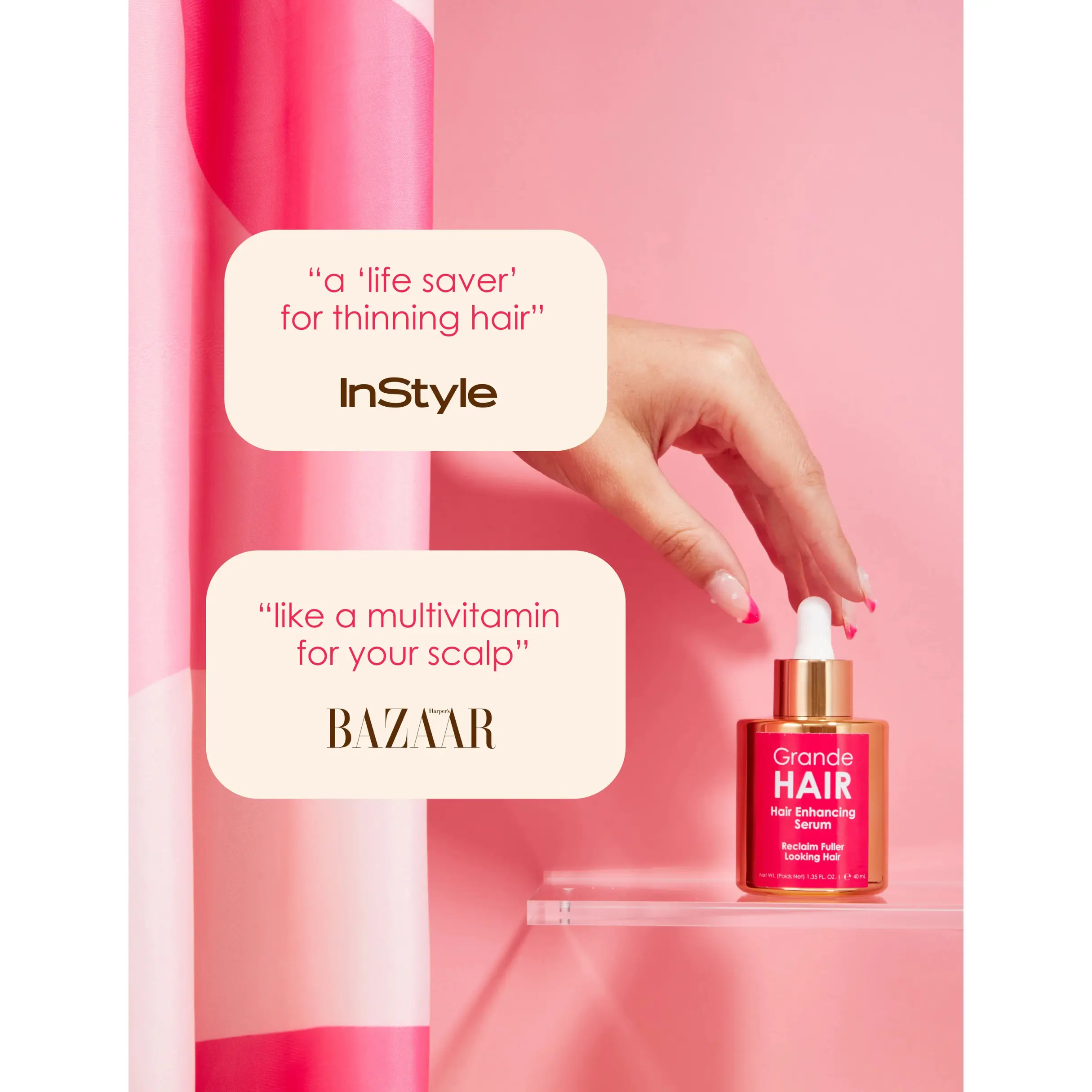 A serum is the most effective tool for addressing specific issues like thinning hair & GrandeHAIR Enhancing Serum targets these problems right where they start – at the scalp. Made with a nutrient-rich blend of peptides, vitamins & botanical extracts.