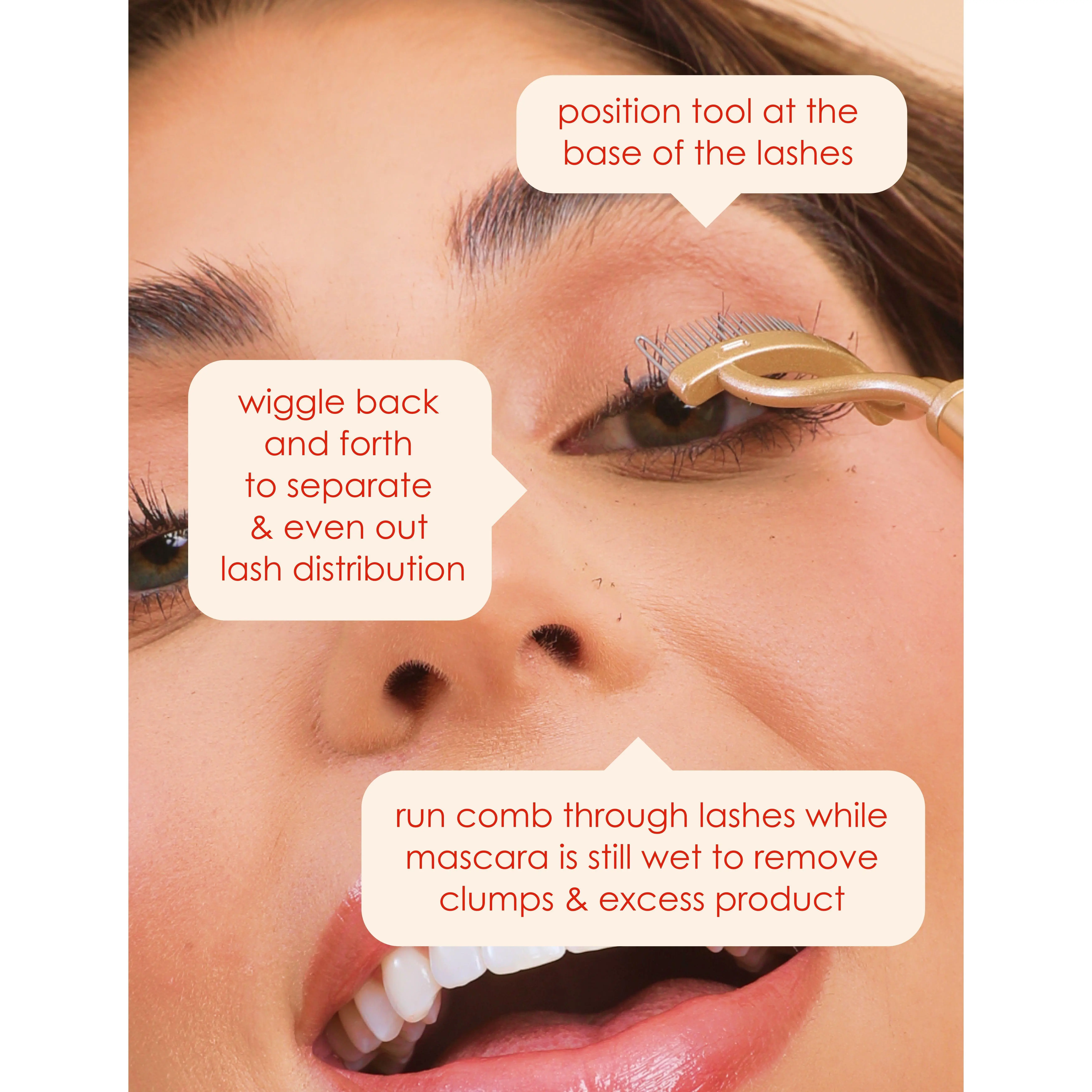 Β·Run the comb through your lashes once more while mascara is still wet to remove clumps & excess product.