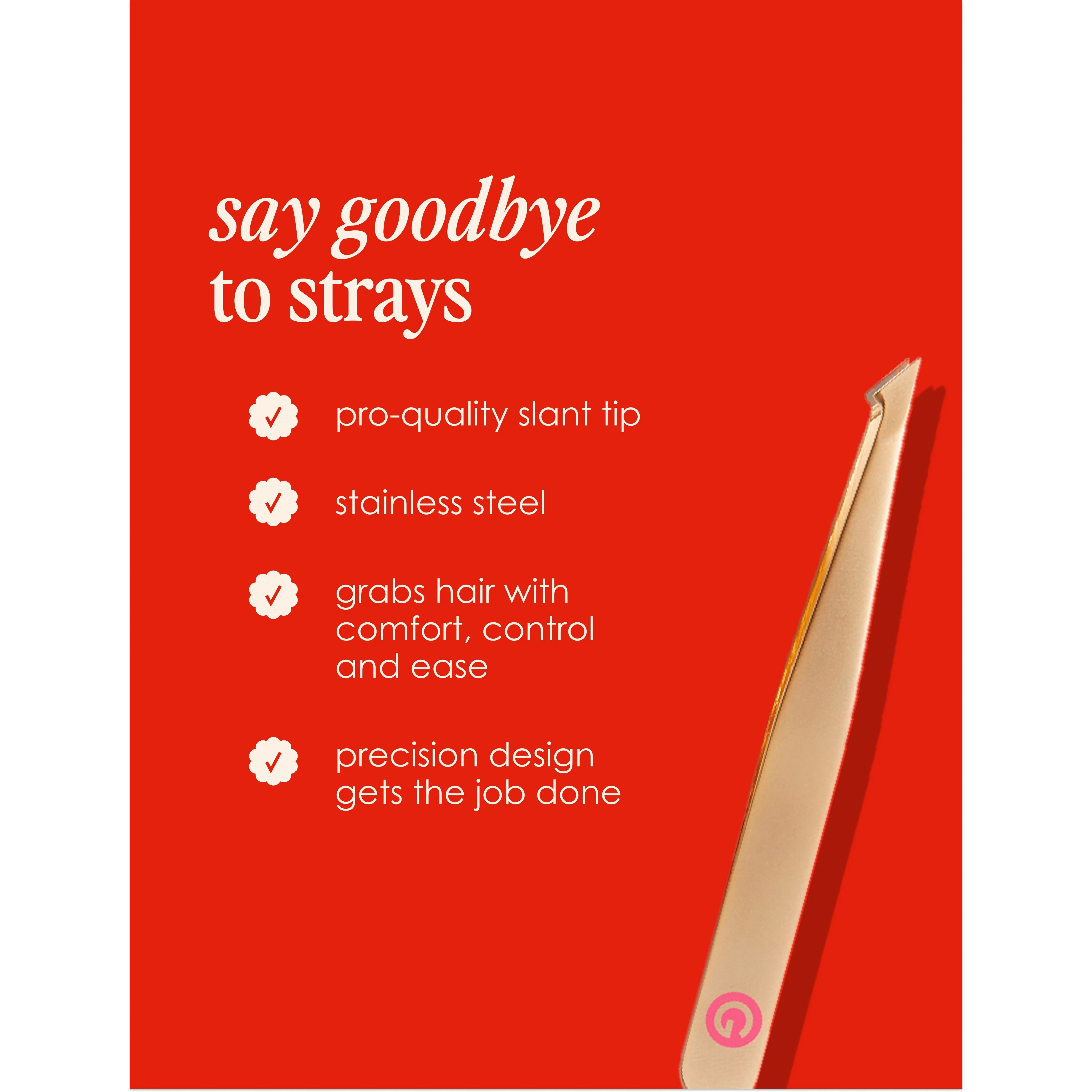 Say goodbye to strays! Shape and groom brows with expert precision using GrandeTWEEZERS. No hair is too small or too fine for these stainless steel, slant tip tweezers, angled to effortlessly grasp, grab, and pluck every hair.