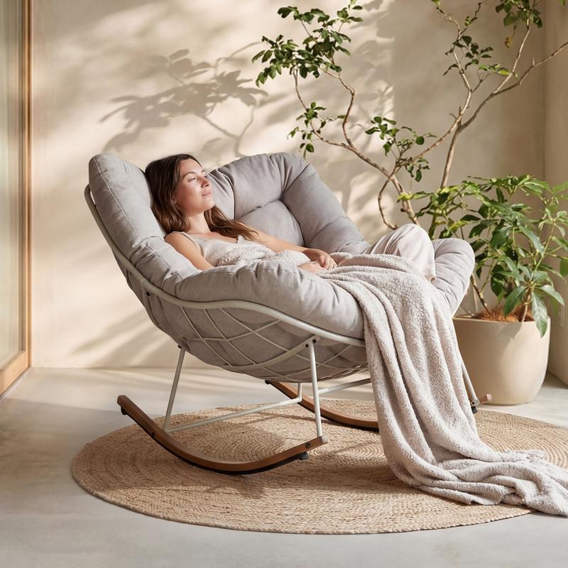 The GRANDPATIO Oversized Rocking Chair offers unbeatable comfort. Its 40"D x 38"W x 34"H design ensures ample space. The 40" seat depth and 25.6" back height provide ultimate relaxation. Weighing 37 lbs, it supports up to 350 lbs. The plush cushioning adds to the comfort. Perfect for gaming, reading, relaxing, or sleeping.