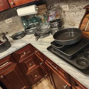 • Complete Kitchen In A Box: Includes frying pans, skillets, saucepans, stock pots (all with tempered glass lids), a deep frying pan, casserole pan with steamer tray, fry basket, and lid. Also features a PRO bakeware set with a cookie sheet/jelly roll pan, loaf pan, muffin tin, square pan, and more.