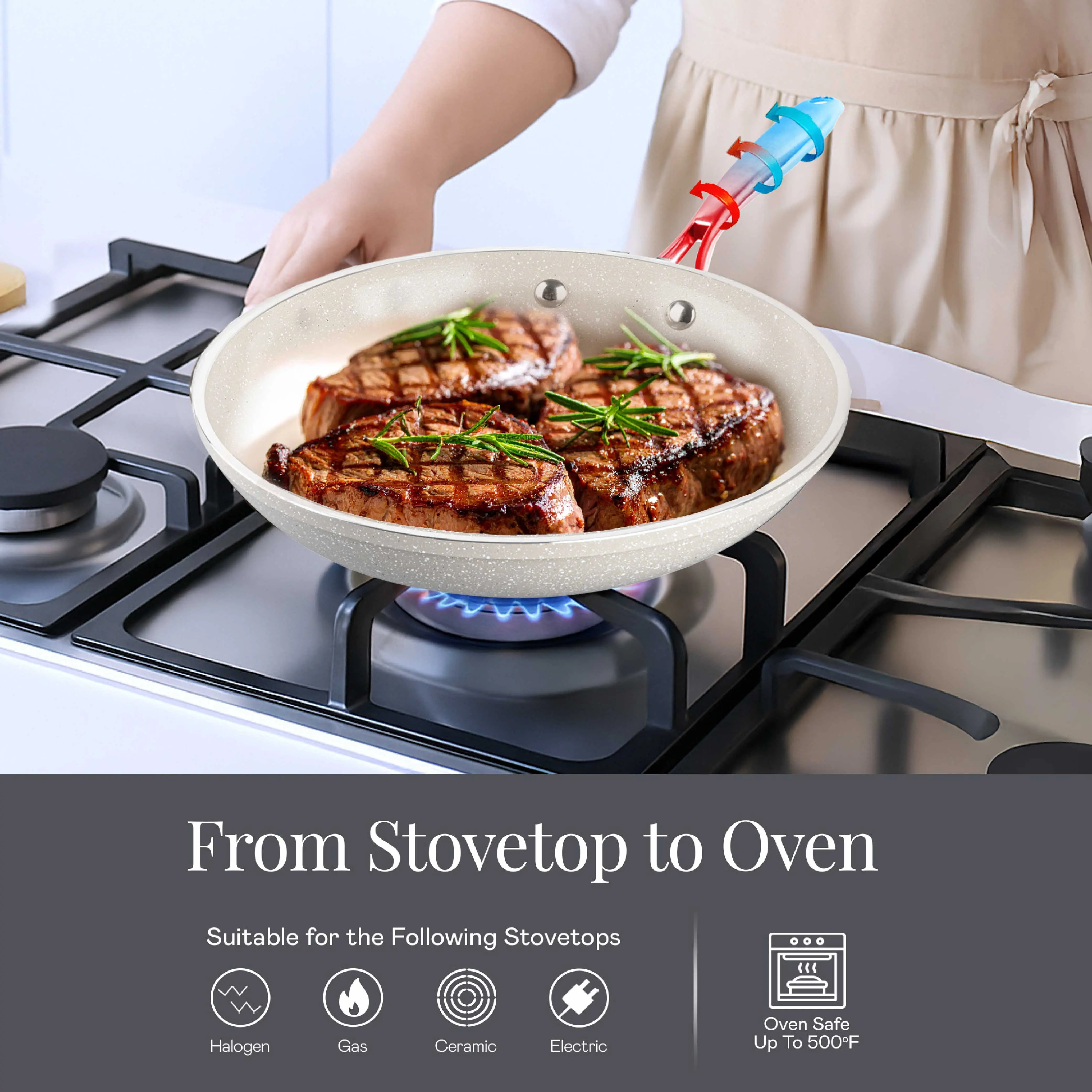 ·Versatile Sizes: Includes 8", 10", and 12" skillets to handle everything from quick breakfasts to family dinners.