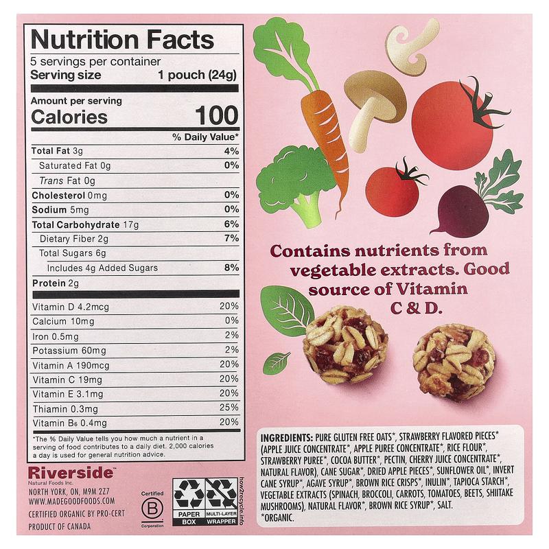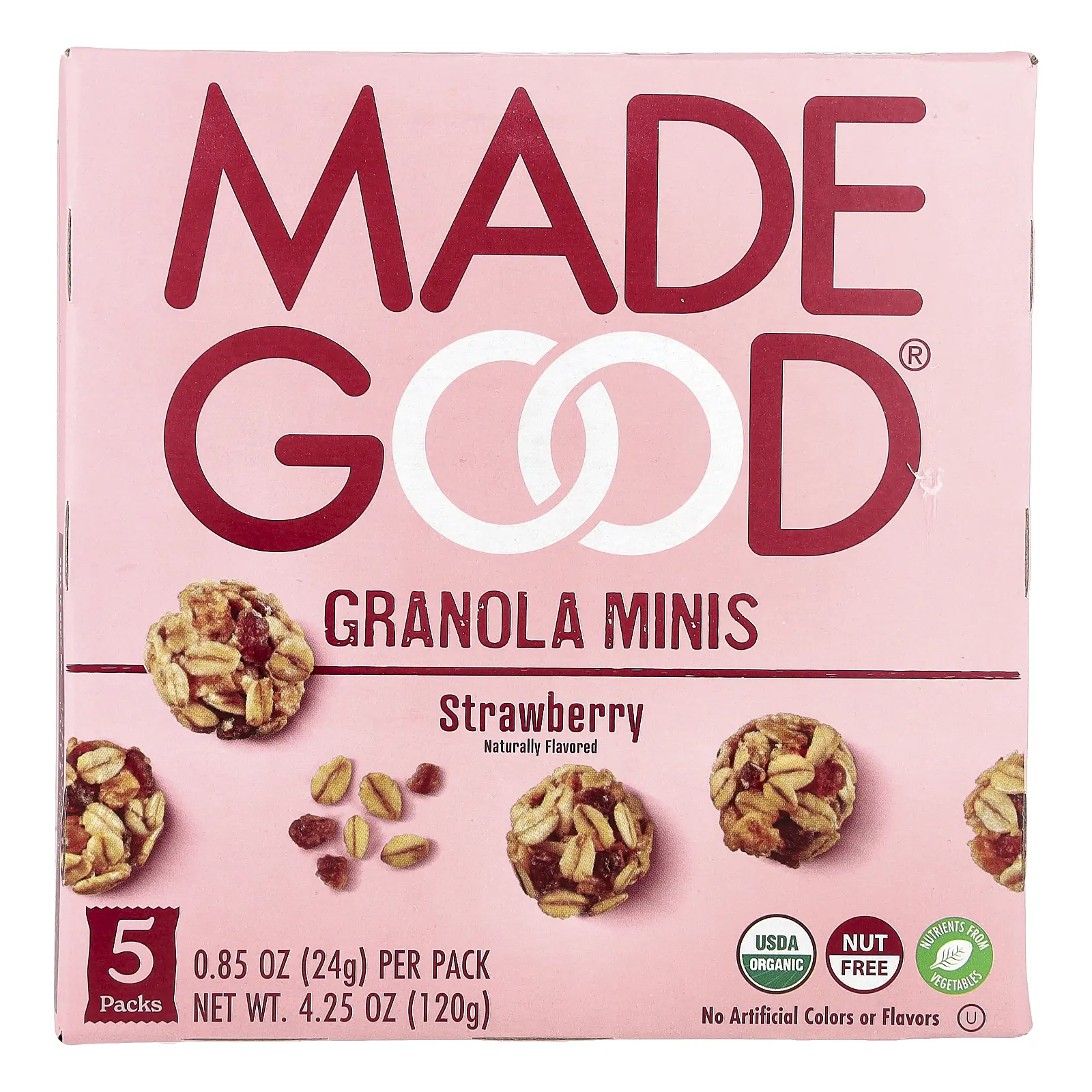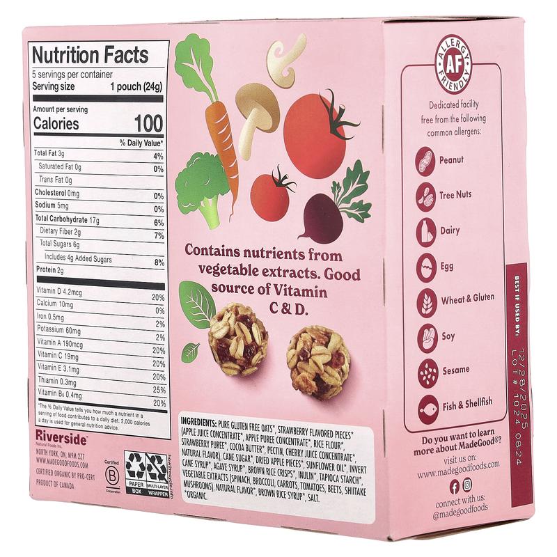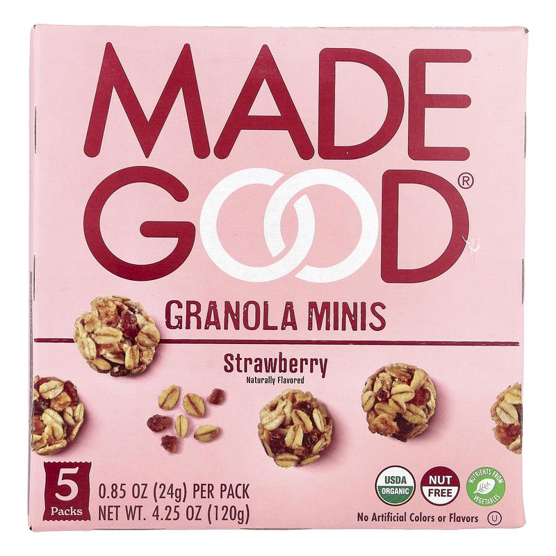 5. MadeGood Granola Minis, Strawberry, 5 Packets, 0.85 oz (24 g) Each