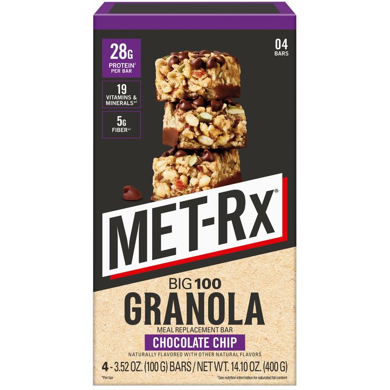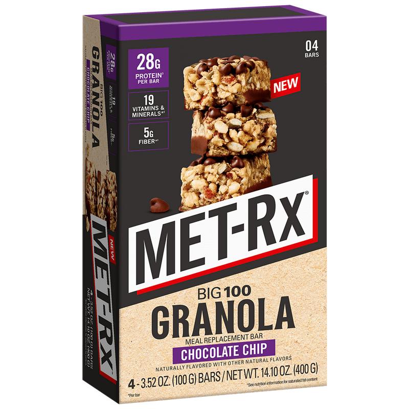 -HIGH PROTEIN GRANOLA BARS: Start your active day with MET-Rx BIG 100 Chocolate Chip Granola Bars, offering familiar granola flavors and textures combined with a powerful 28g of protein per bar.
