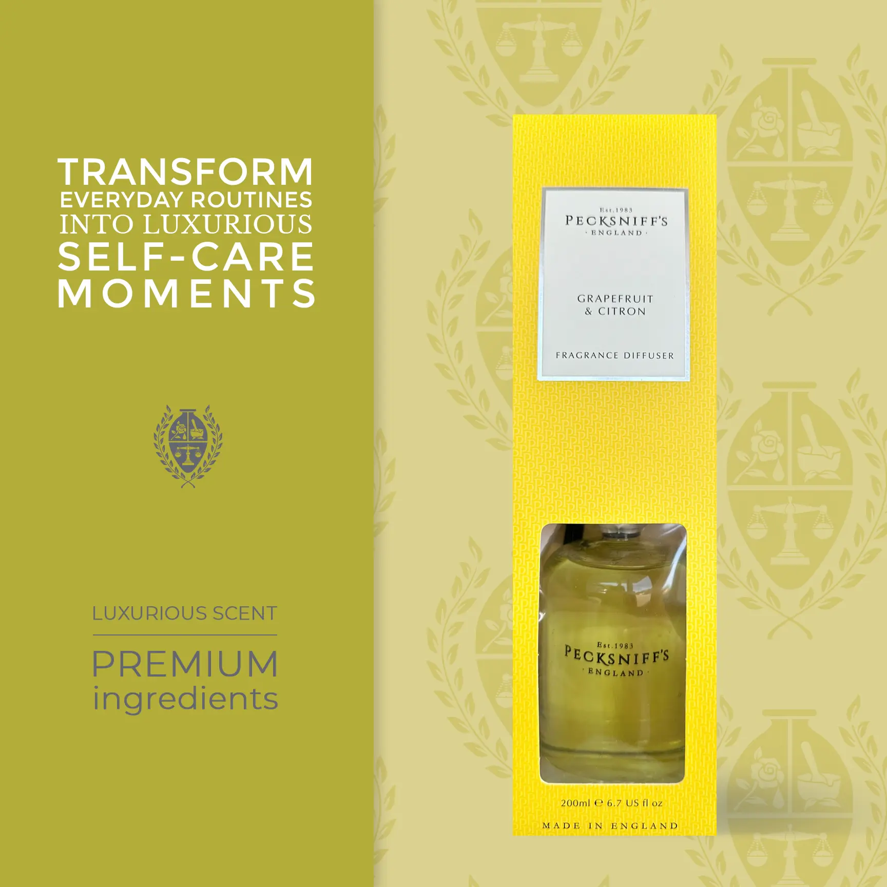 Pecksniff's Classic Reed Diffuser Set | Grapefruit & Citron Scent, Fresh and Zesty Fragrance Reed Diffusers for Home Office Decor | 200ml/ 6.7 fl oz