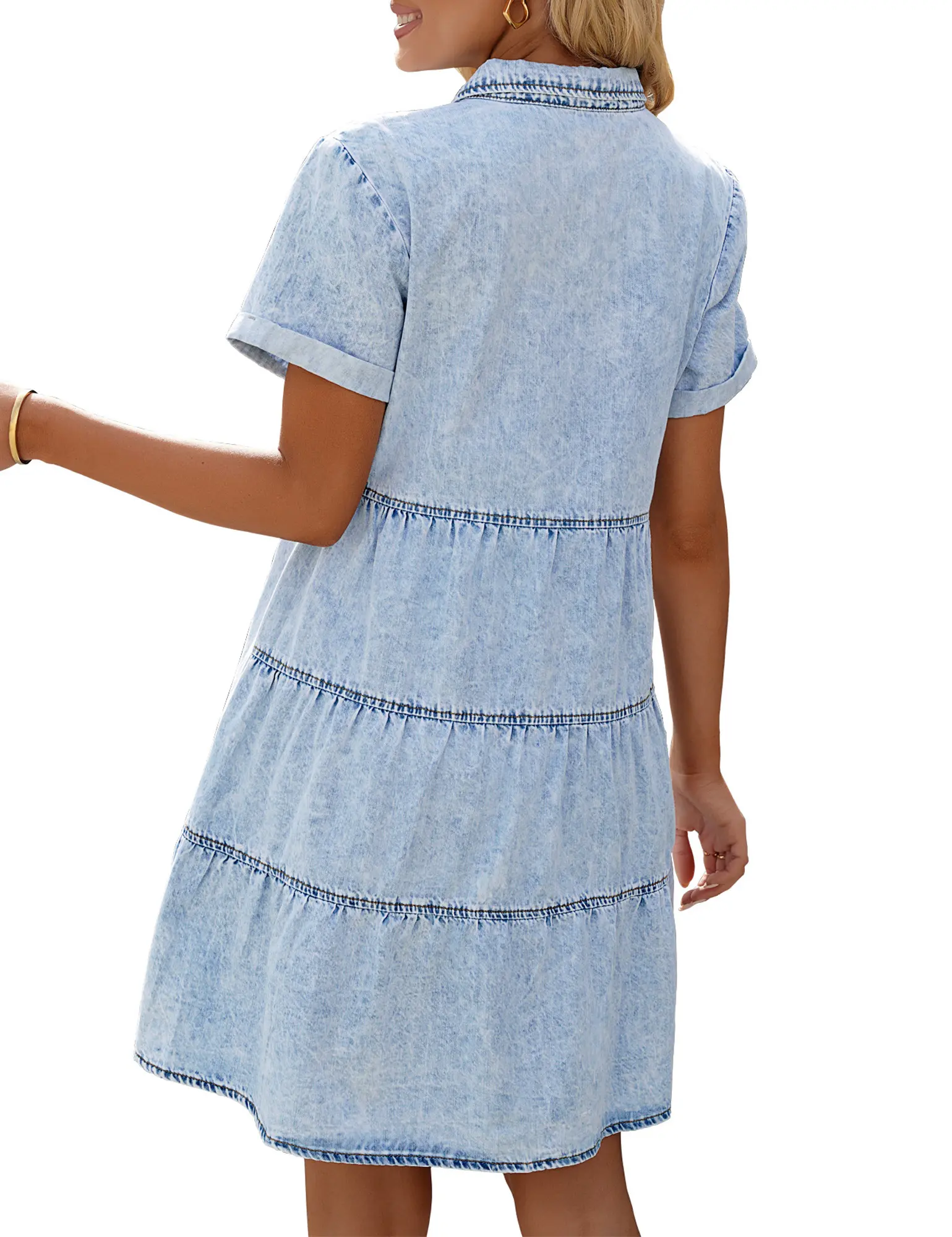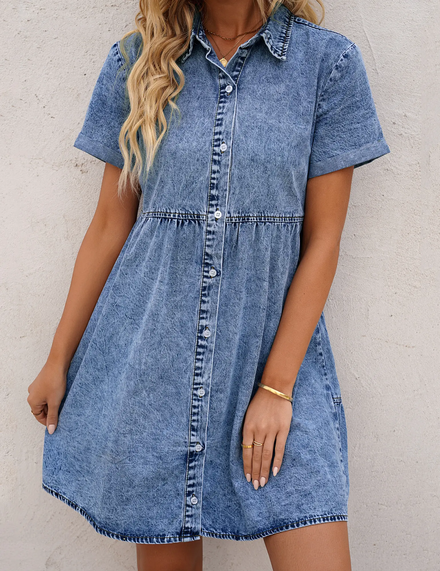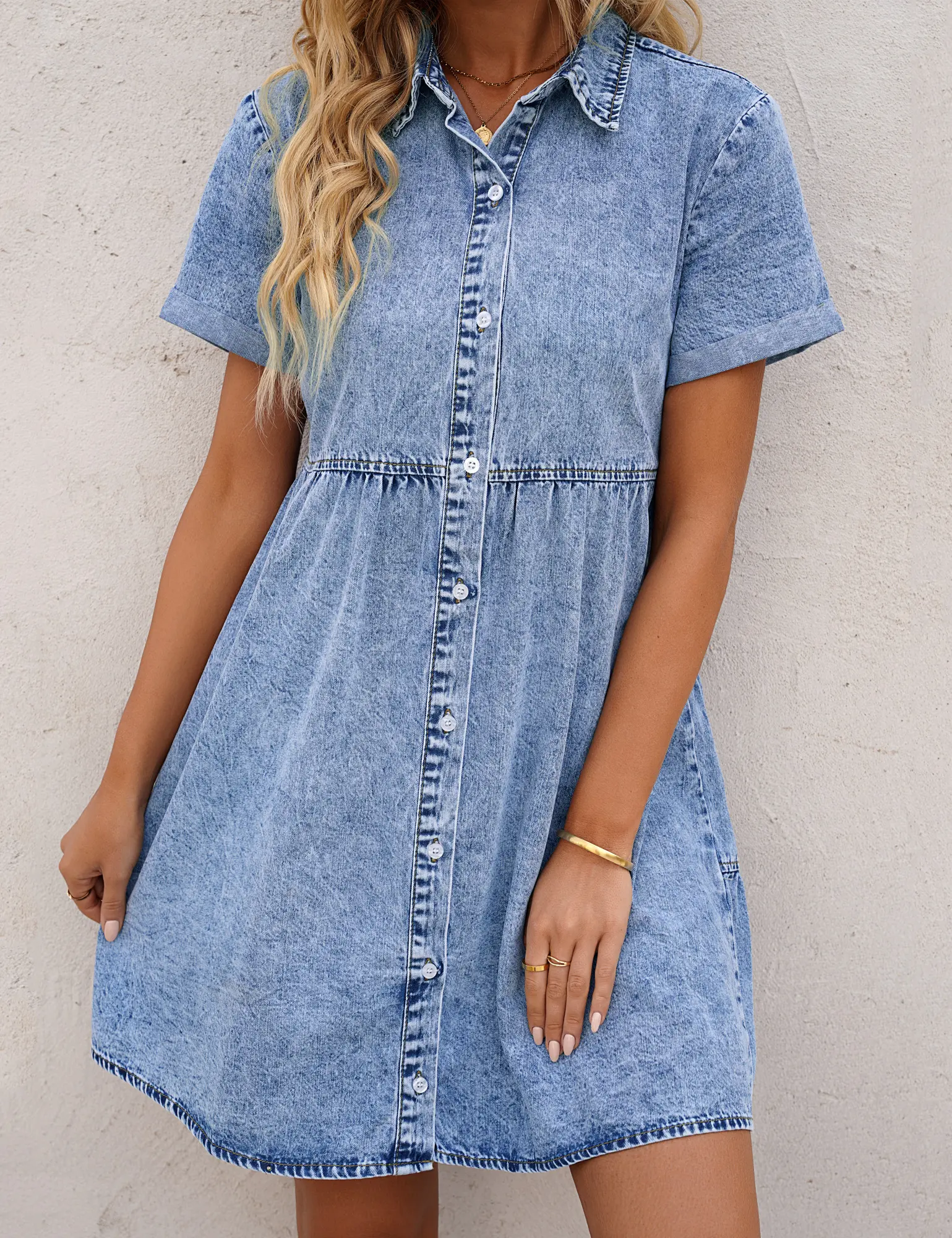 The denim washed babydoll shirt dress with soft acid wash denim fabric, it is comfy to wear and easy to match. Babydoll tiered dress for women can make you be an eye-catcher in any occasions, suitable for ladies and womens at all ages.