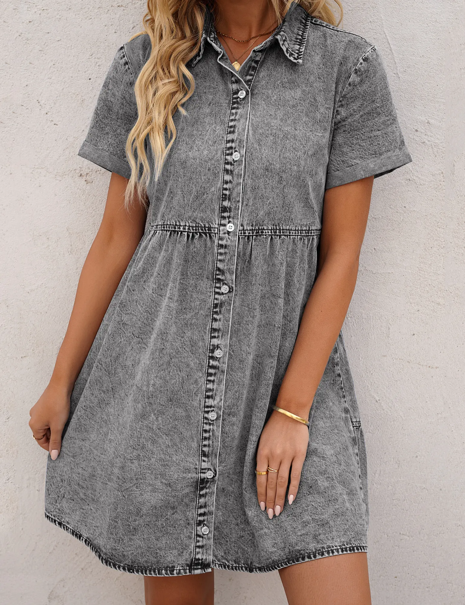 Design: Short babydoll dress for women comes with babydoll style and high waistline design, giving a relaxed fitting and helping your hide your tummy. Tiered denim babydoll dress with button down closure, chic yet elegant.