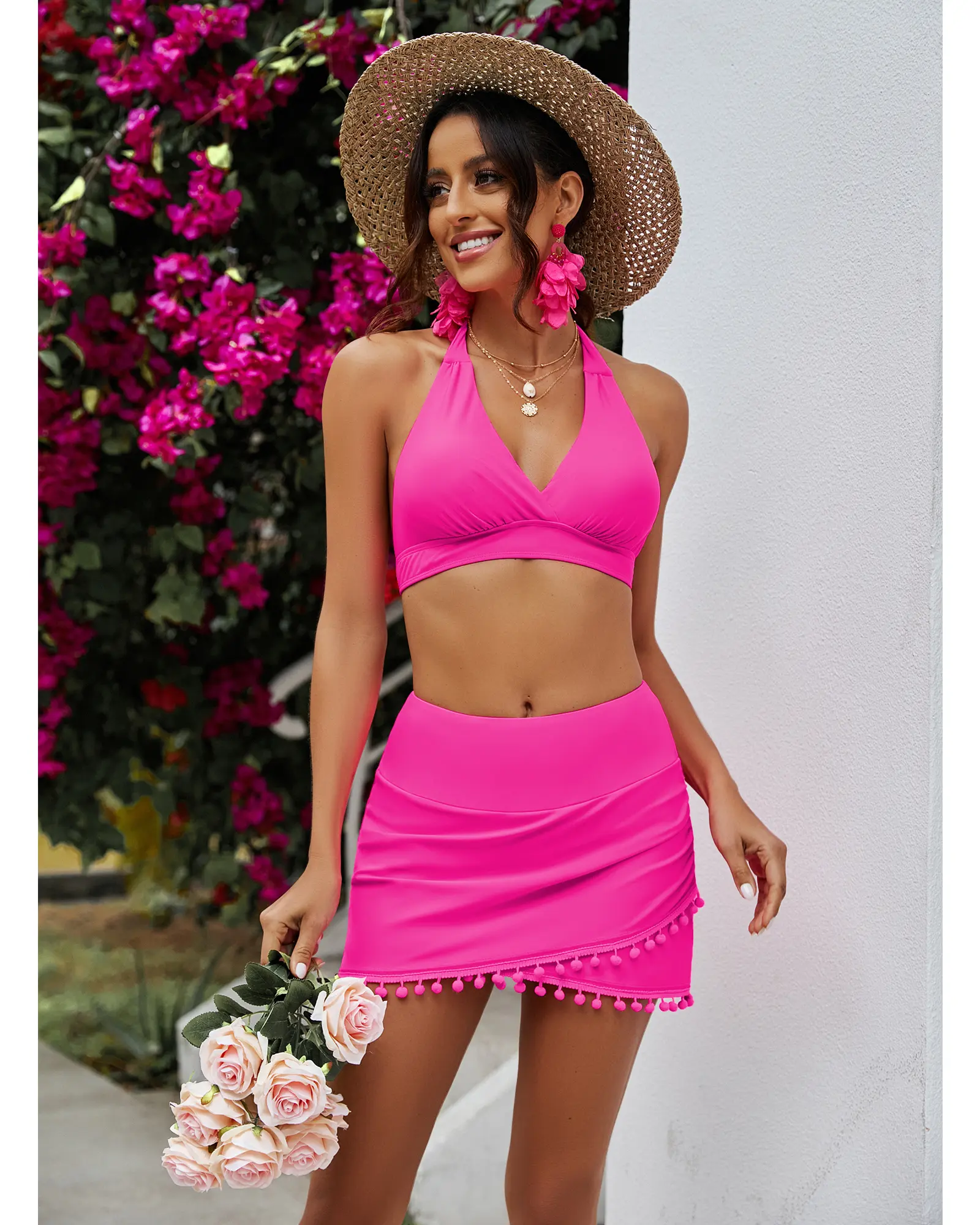 Designed for comfort and style, this mid waist swim skirt features a playful tassel hem. It adds movement and a relaxed vacation vibe. The elastic waistband offers a secure yet comfortable fit. 🌴