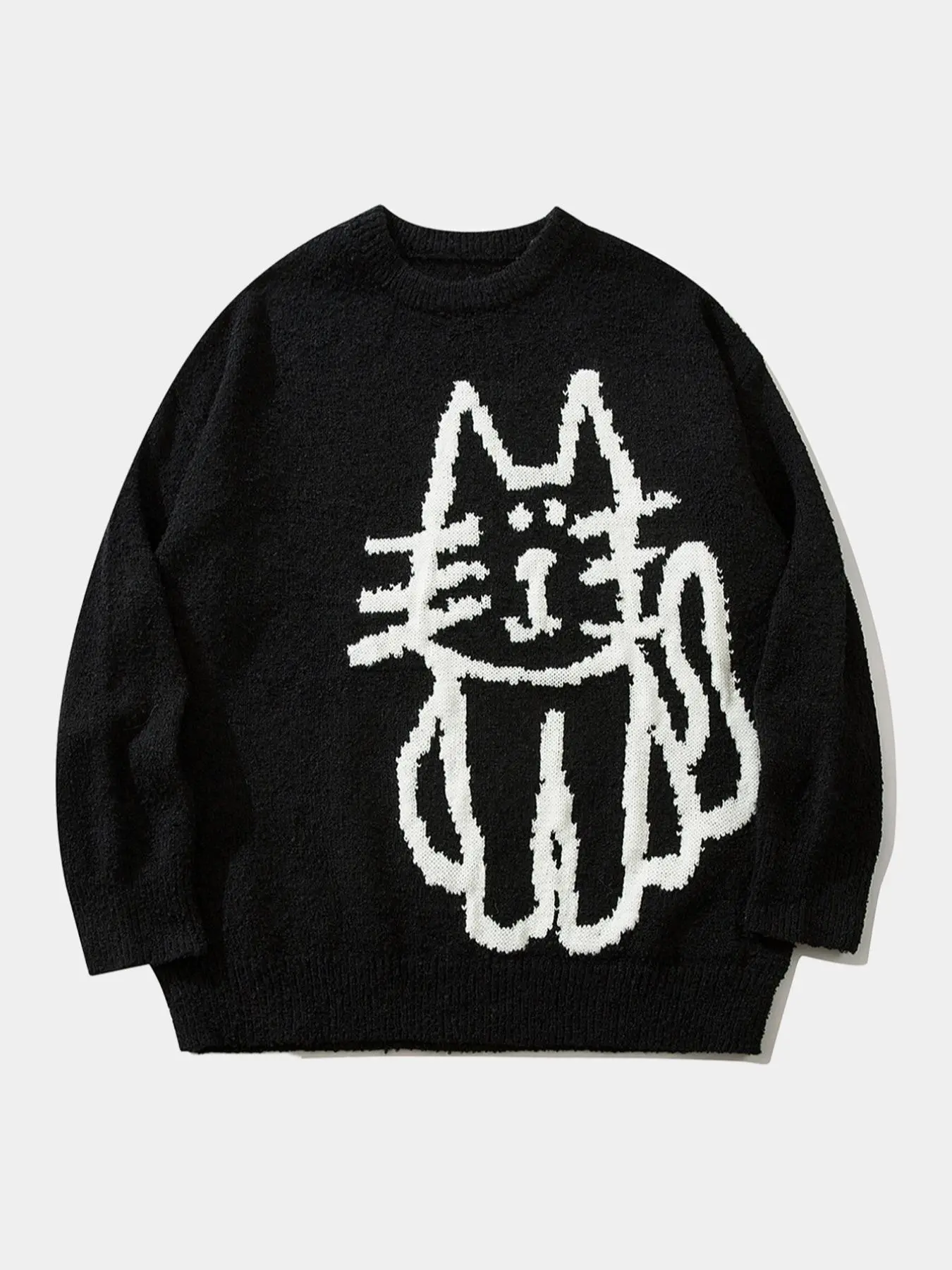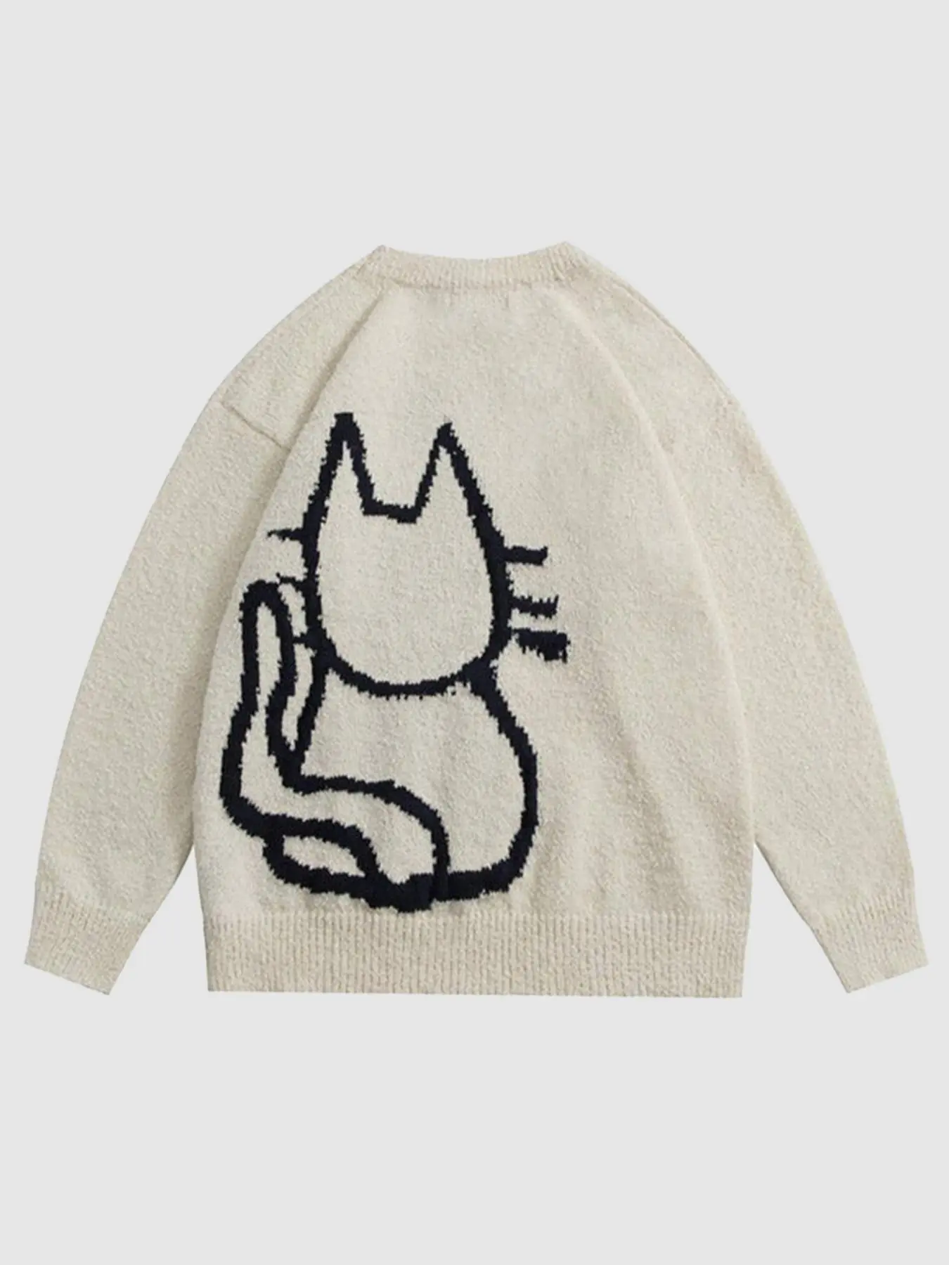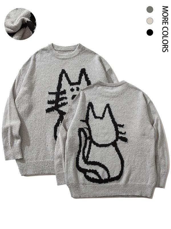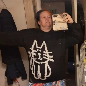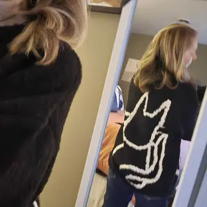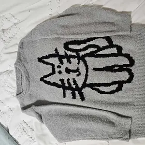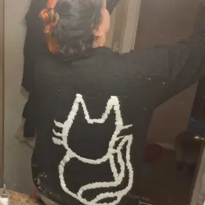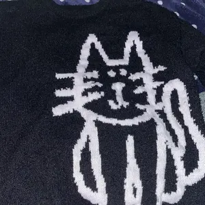 Calling all crazy cat lovers! Love this sweater!!! Definitely an oversized men’s sized fit. I’m usually a medium in women & a small in this is huge but so cozy and comfortable!! Very nice quality & so soft, not itchy at all! This one has the back of the cat on the back. I’ve seen some that do not.