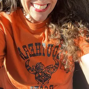 Vibrant Orange, Great Material, Great Quality, Fast Shipping, Highly Recommend. Love the shirt. Will buy from this boutique again ❤️
