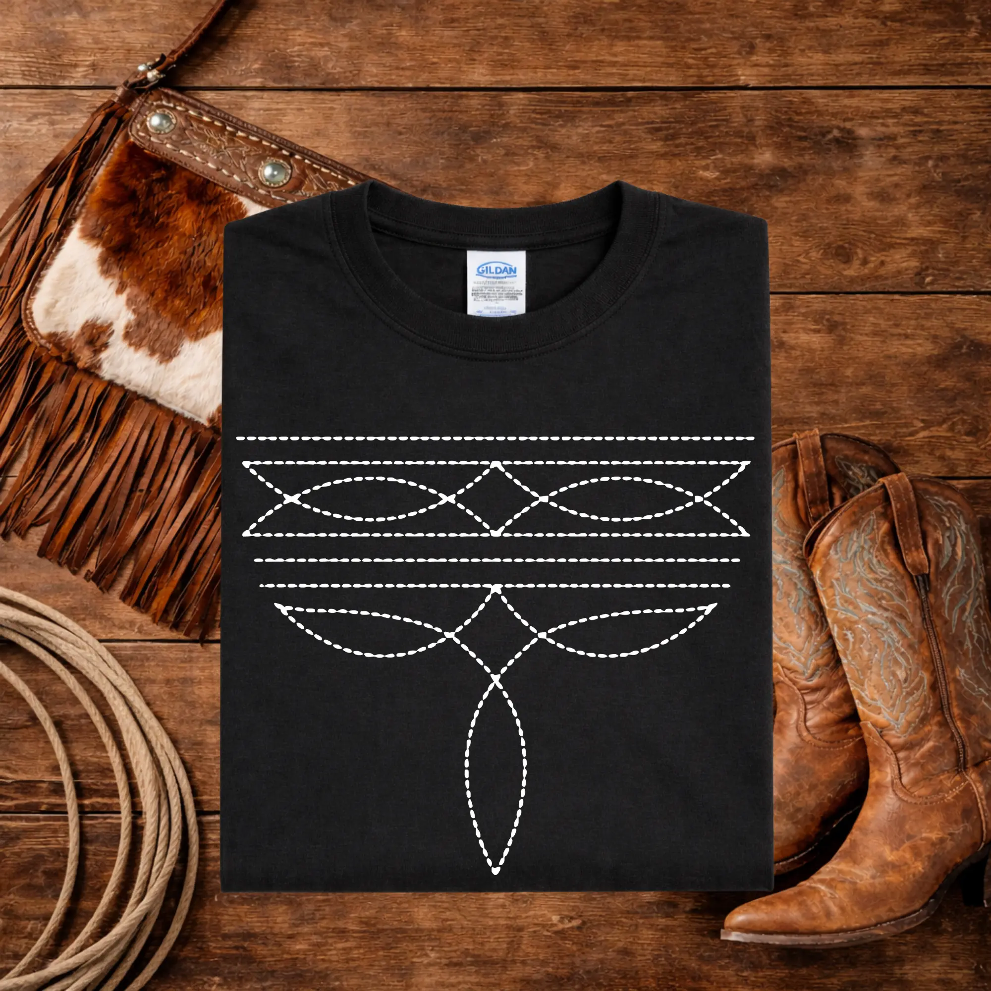 This shirt is absolutely gorgeous. Nice dark gray w boot stitch graphic. Soft and fits amazing. You can't go wrong. 🥰