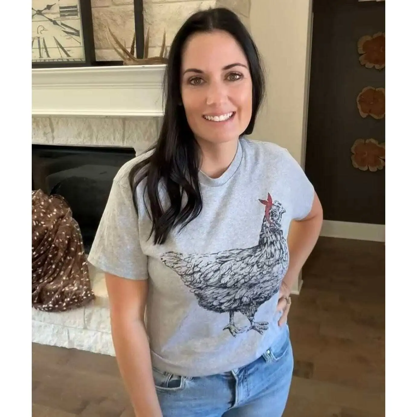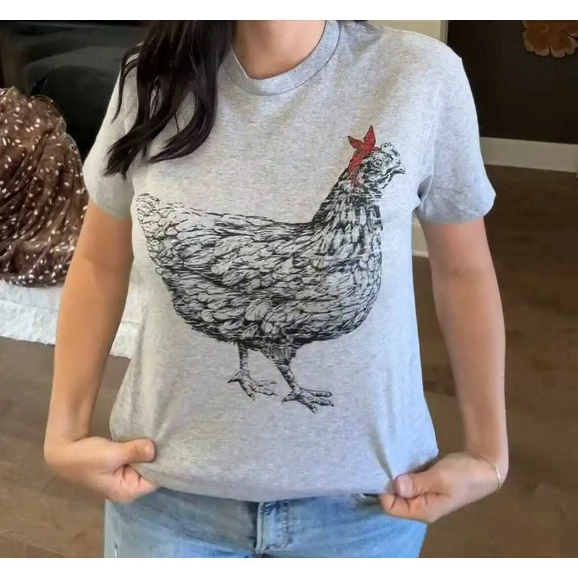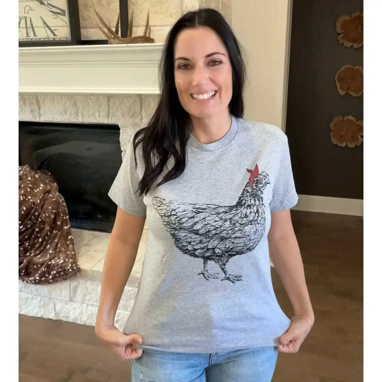 Love love love this shirt! It fits like a dream and that little hen is just precious!