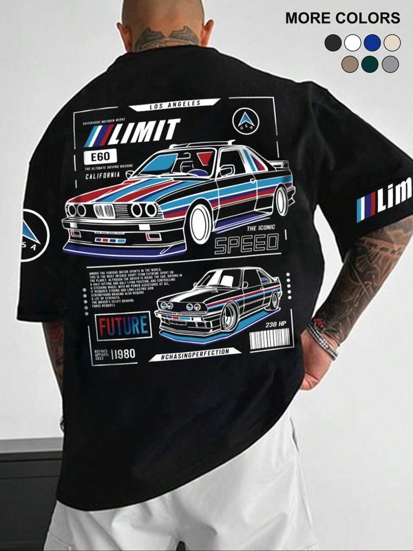 5. Men's Car & Letter Print Short Sleeve Graphic Tee, Regular Fit Streetwear Casual Round Neck T-shirt for Summer, Men's Top for Daily Wear
