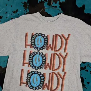 Love this shirt! It’s perfect for any western look. Love the turquoise concho for the “O” in howdy is so cute! The size is great and I will be getting more tshirts from this boutique!!