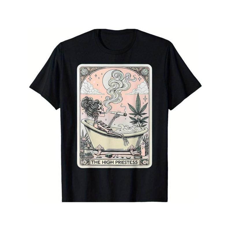 5. Graphic vintage T-Shirt [Fast Arrival] Tarot Card The High Priestess Mystic Funny Skeleton Outfit T-Shirt for Men Women