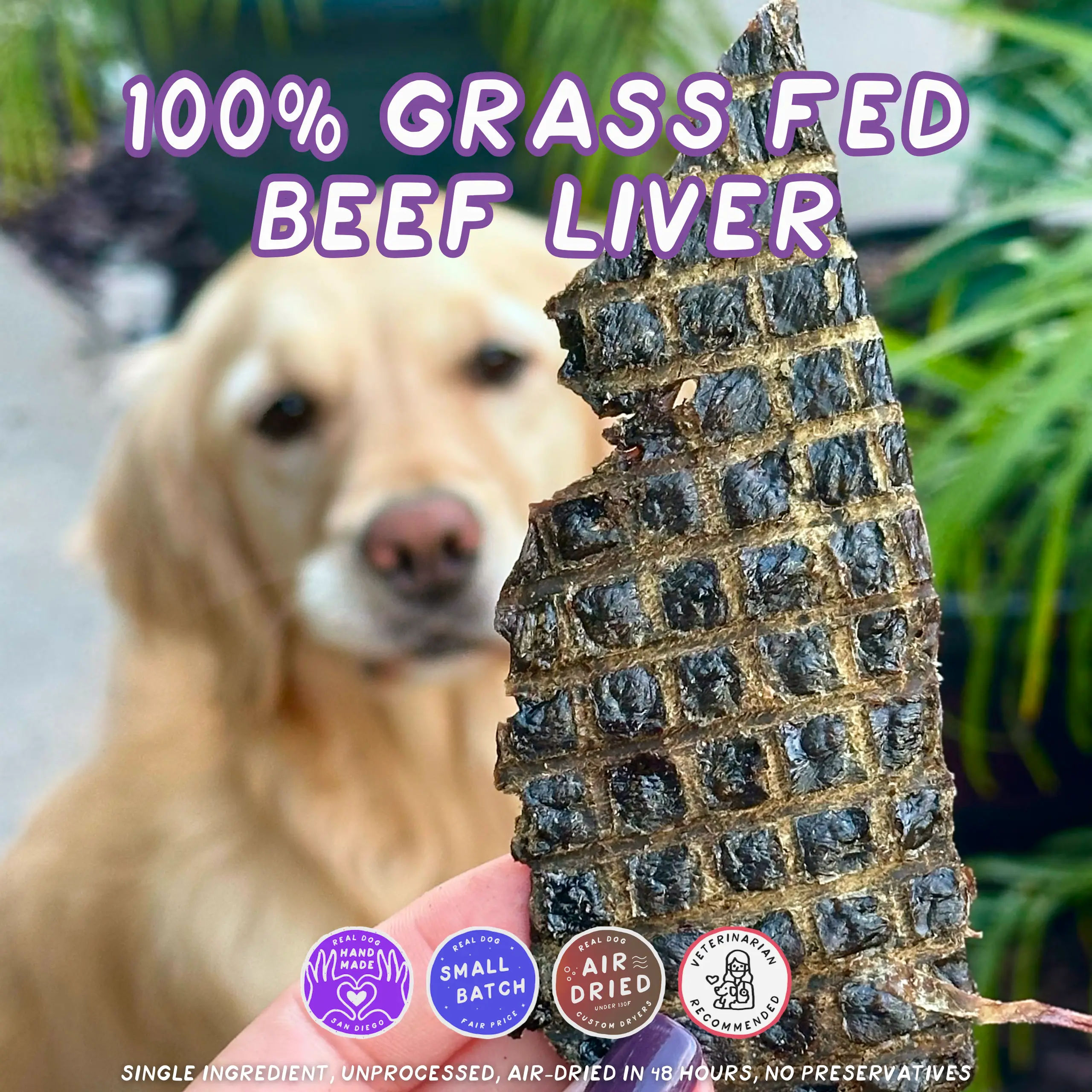 Keywords: beef liver dog treat, high-protein dog snack, single-ingredient treat, air-dried liver for dogs, natural dog training treat, real dog box beef liver, made in San Diego dog treat, clean dog treat for all breeds