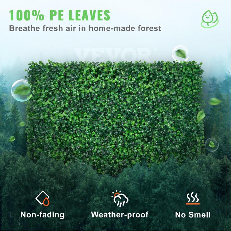 5. VEVOR 12PCS 24\"x16\" Grass Wall Panels for 32 SQ Feet, Boxwood Hedge Wall Panels, Artificial Grass Backdrop Wall 1.6\", Privacy Hedge Screen UV Protected for Outdoor Indoor Garden Fence Backyard