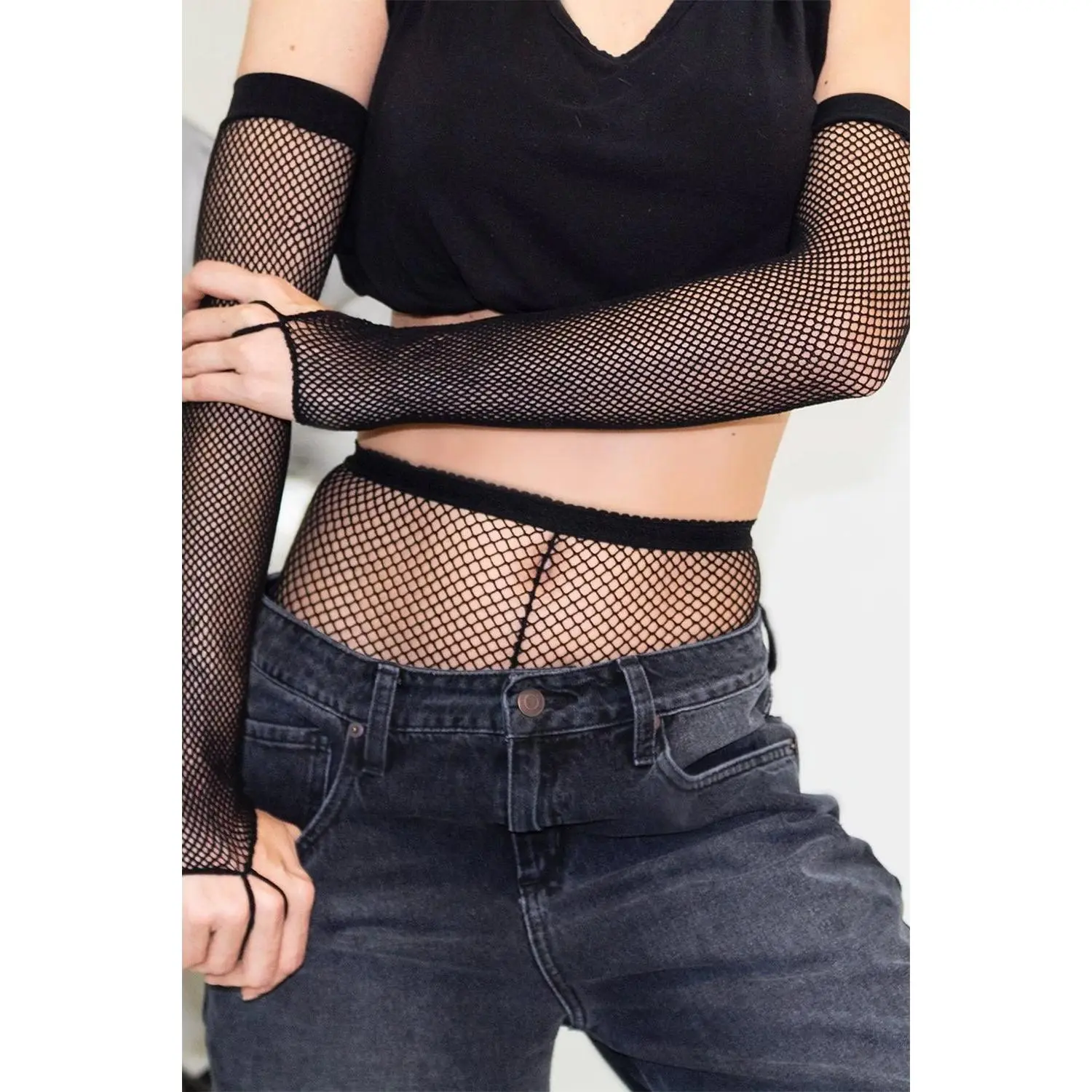 ·Black Fishnet Arm Warmers.