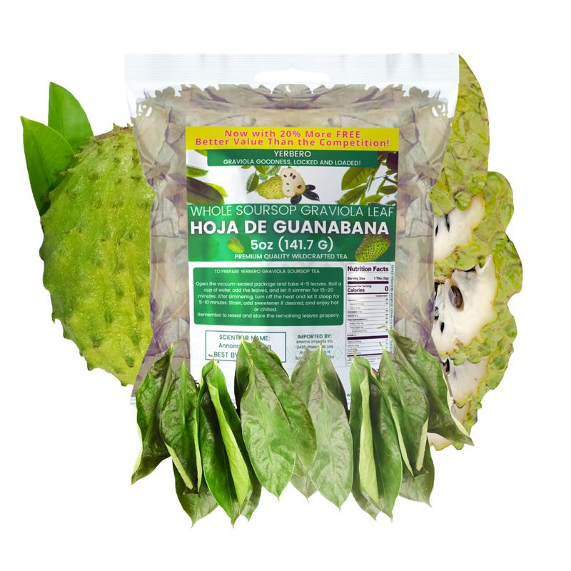 Experience the pure essence of nature with Yerbero’s Graviola (Soursop) Tea. Sourced directly from Mexico, our tea is made from whole, hand-selected soursop leaves known for their rich aroma and smooth, earthy taste. With 5oz of premium dried leaves, you're getting 20% more tea than most brands—without paying more. We prioritize freshness, transparency, and tradition, delivering you a high-quality herbal tea that stays true to its roots. Enjoy it hot or cold as part of your daily wellness ritual.