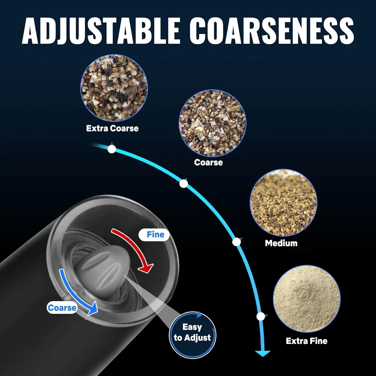 ·Adjustable Coarseness: Customize the grind to your liking.