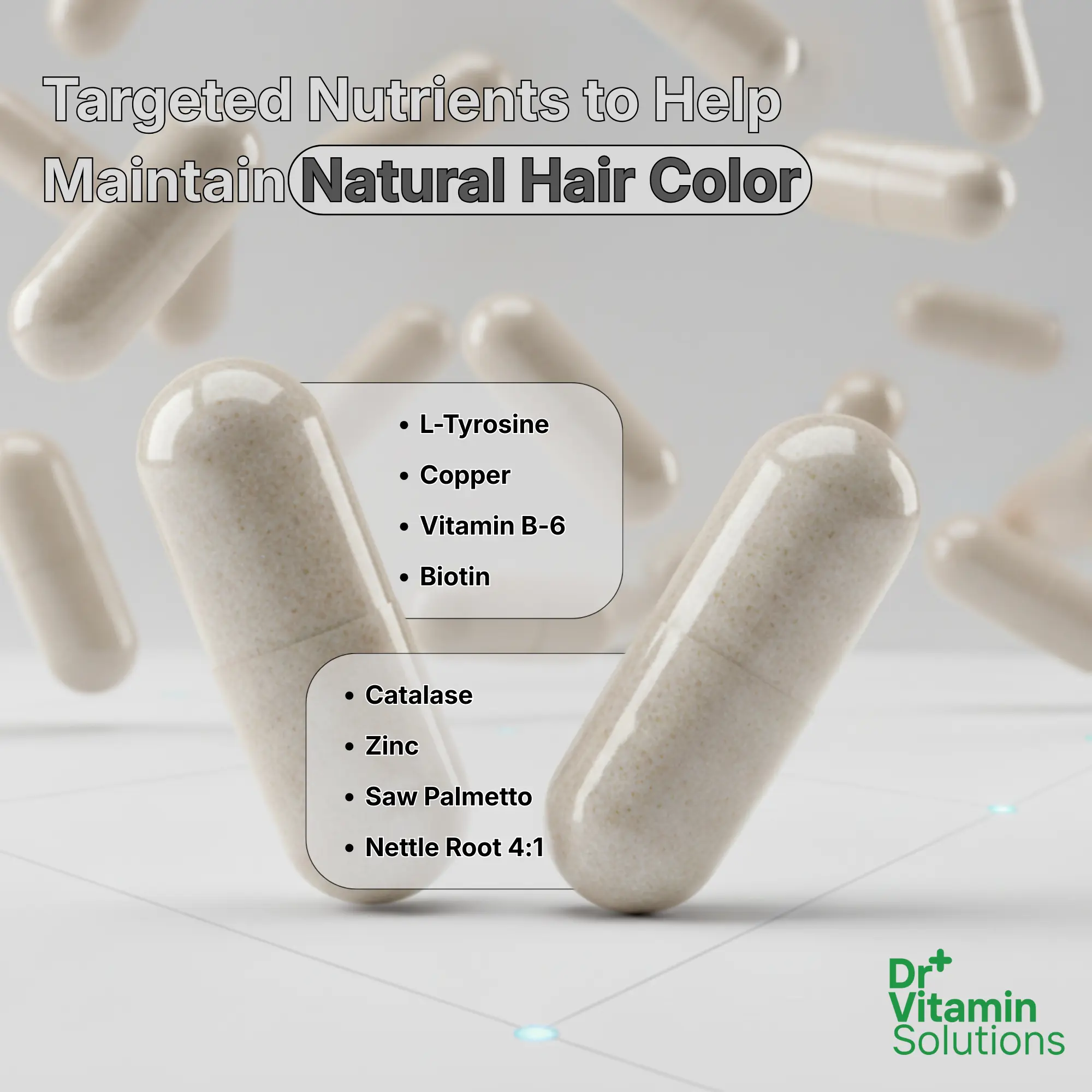 Our anti-gray hair supplements contain a variety of safe ingredients, essential vitamins and nutrients that reverse gray hair at the root level. Both men and women can take advantage of the DR Vitamin Solutions Gray Hair Rescind supplements.