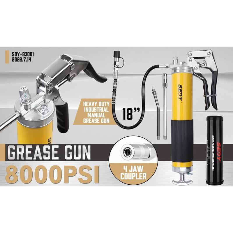 ·TIGHT ERGONOMICS - SEDY Grease Gun is dependable and user-friendly, featuring a pistol grip for easy one-handed operation and enhanced control.