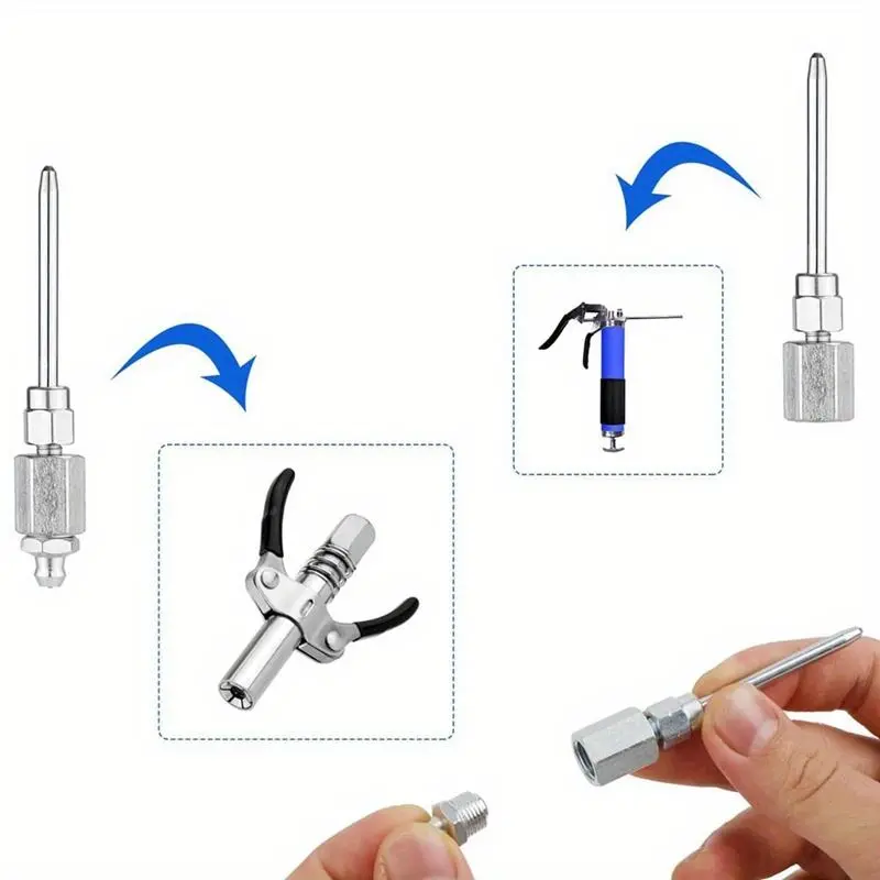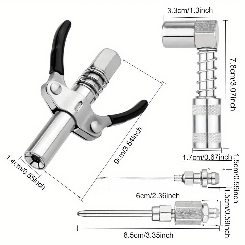 ·Includes 4pcs grease tool accessories: 1pc double handle grease tool connector, 1pc 90-degree grease tool connector adapter, 1pc grease needle, and 1pc needle tip dispenser. 🛠️