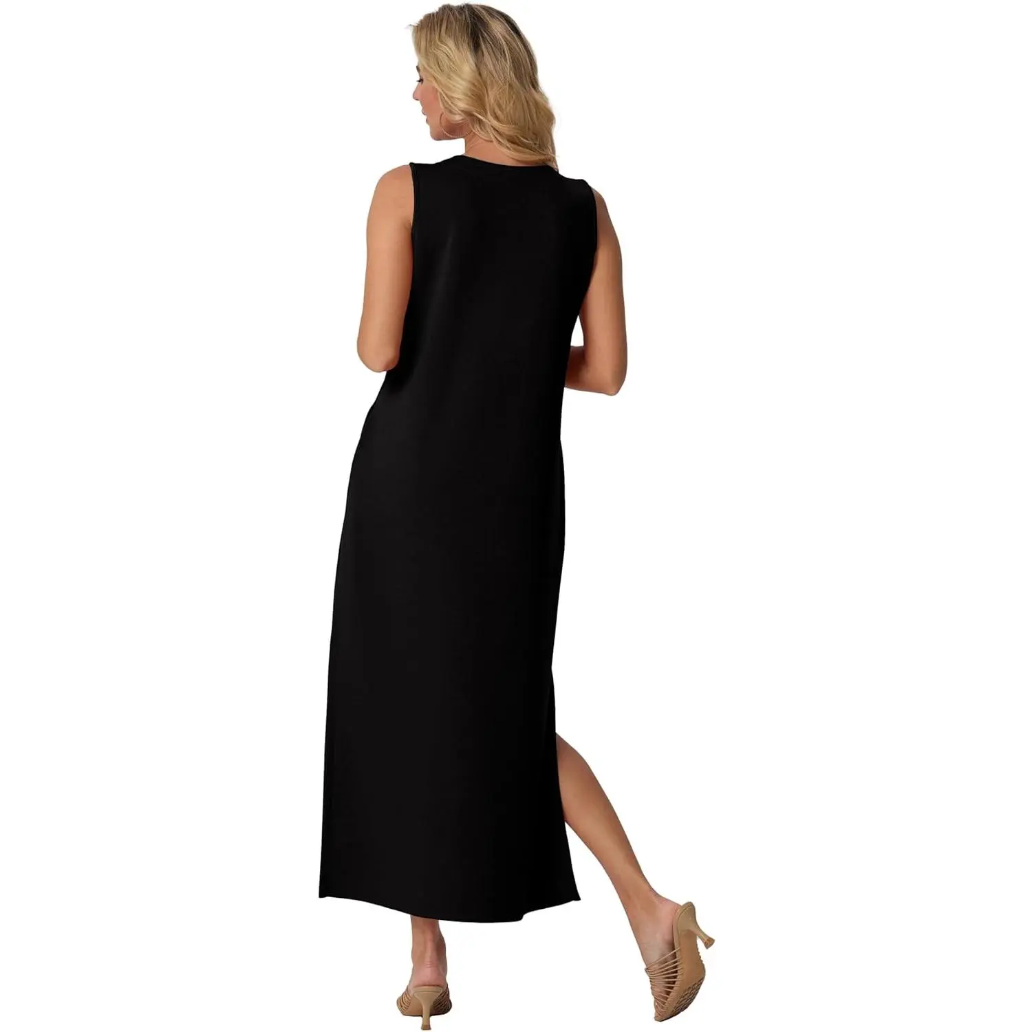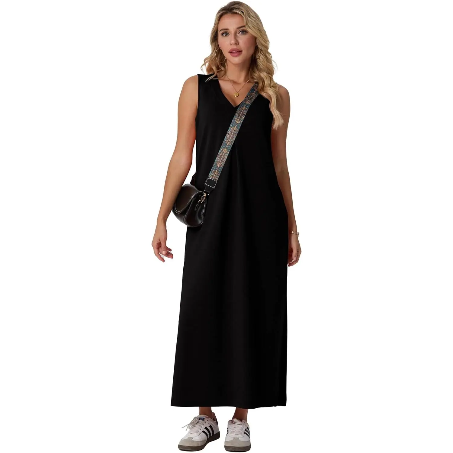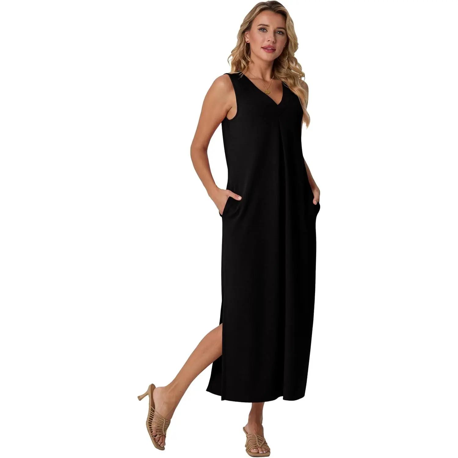 5. GRECERELLE Women 2026 Summer V-Neck Casual Loose Split Wrinkle-Free Long Maxi Vacation Dress with Pockets