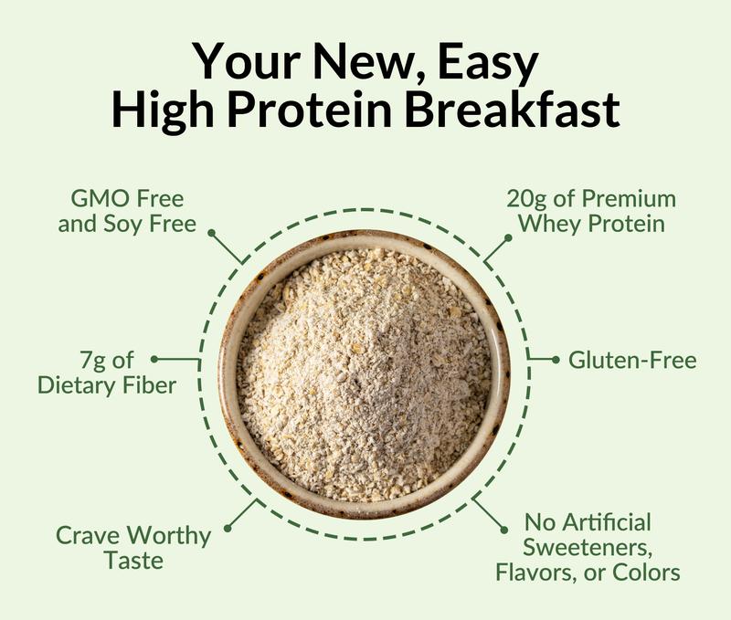 Naked Oats combines premium whey protein with gluten-free rolled oats for a delicious shake or oatmeal that support lean muscle, stable energy, and optimal digestion. With less than thirty seconds of prep time, you can have a high performance breakfast rich in protein and fiber ready to go when you wake up.