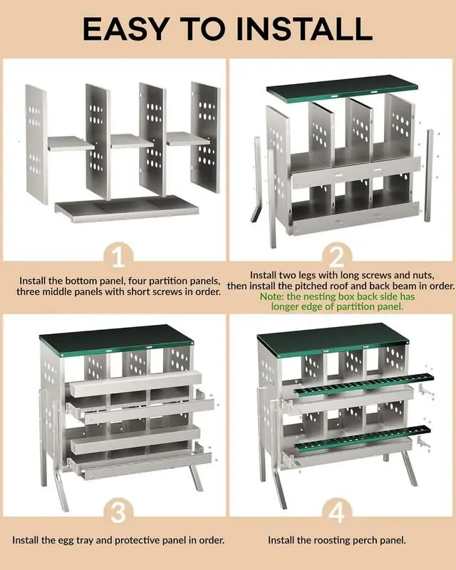[Quick Installation] - Every Hipicute laying box for hens comes complete with the necessary screws, nuts, and clear instructions to facilitate a straightforward setup in about 30 minutes. Our support team is ready to help if you need assistance