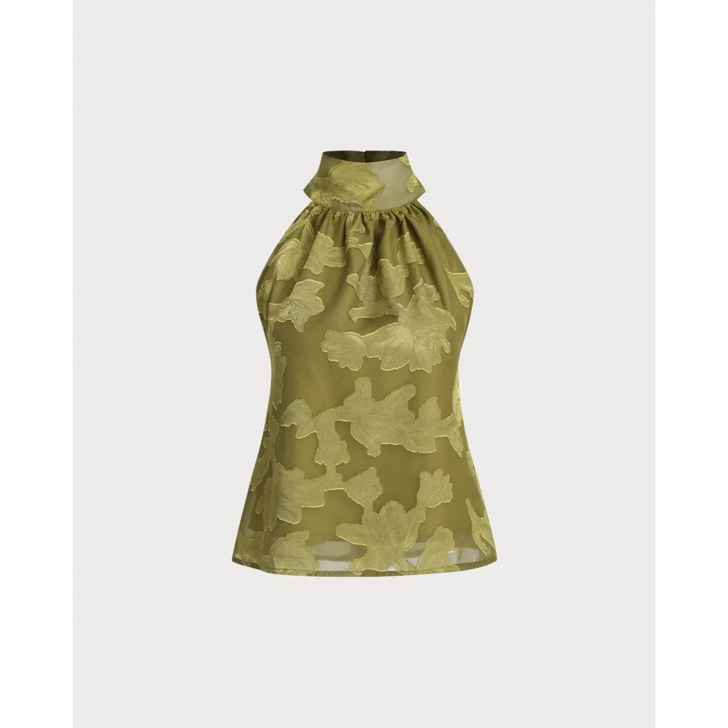 5. Green Floral Turtle Neck Tank Top
