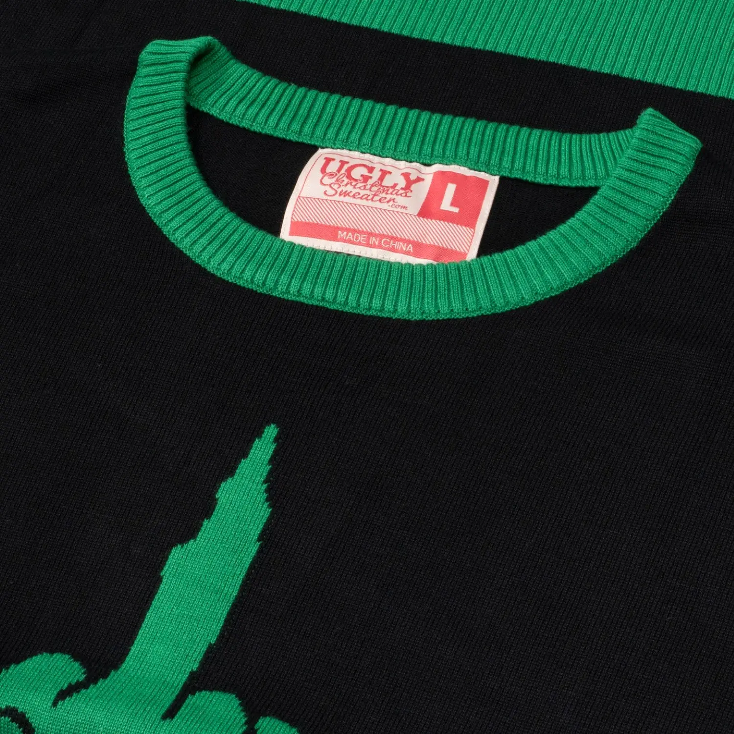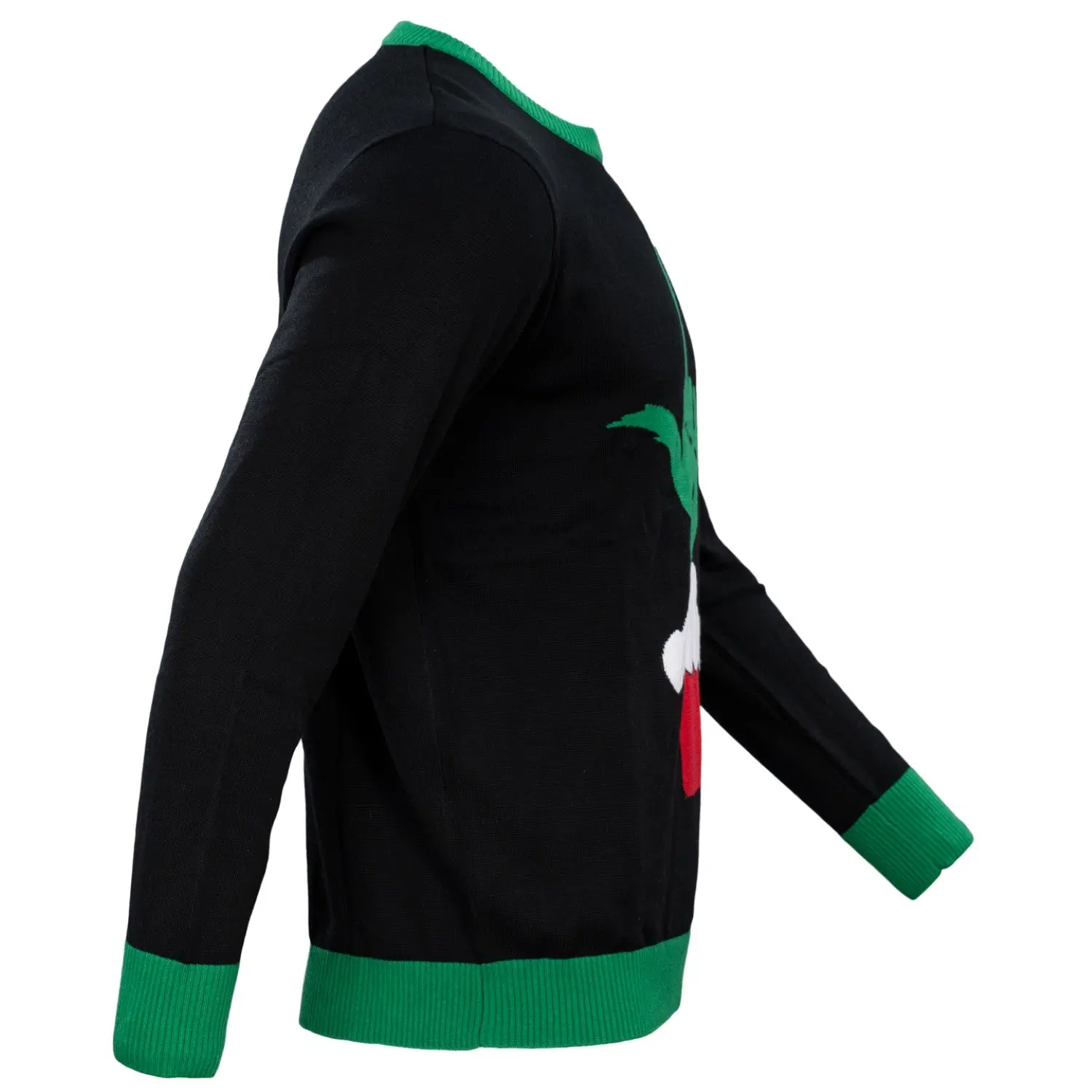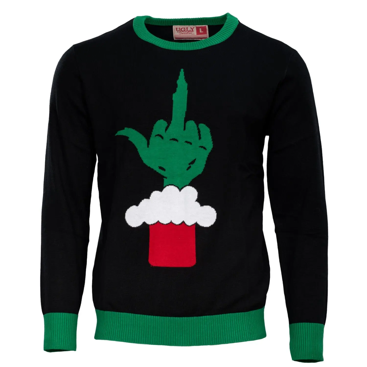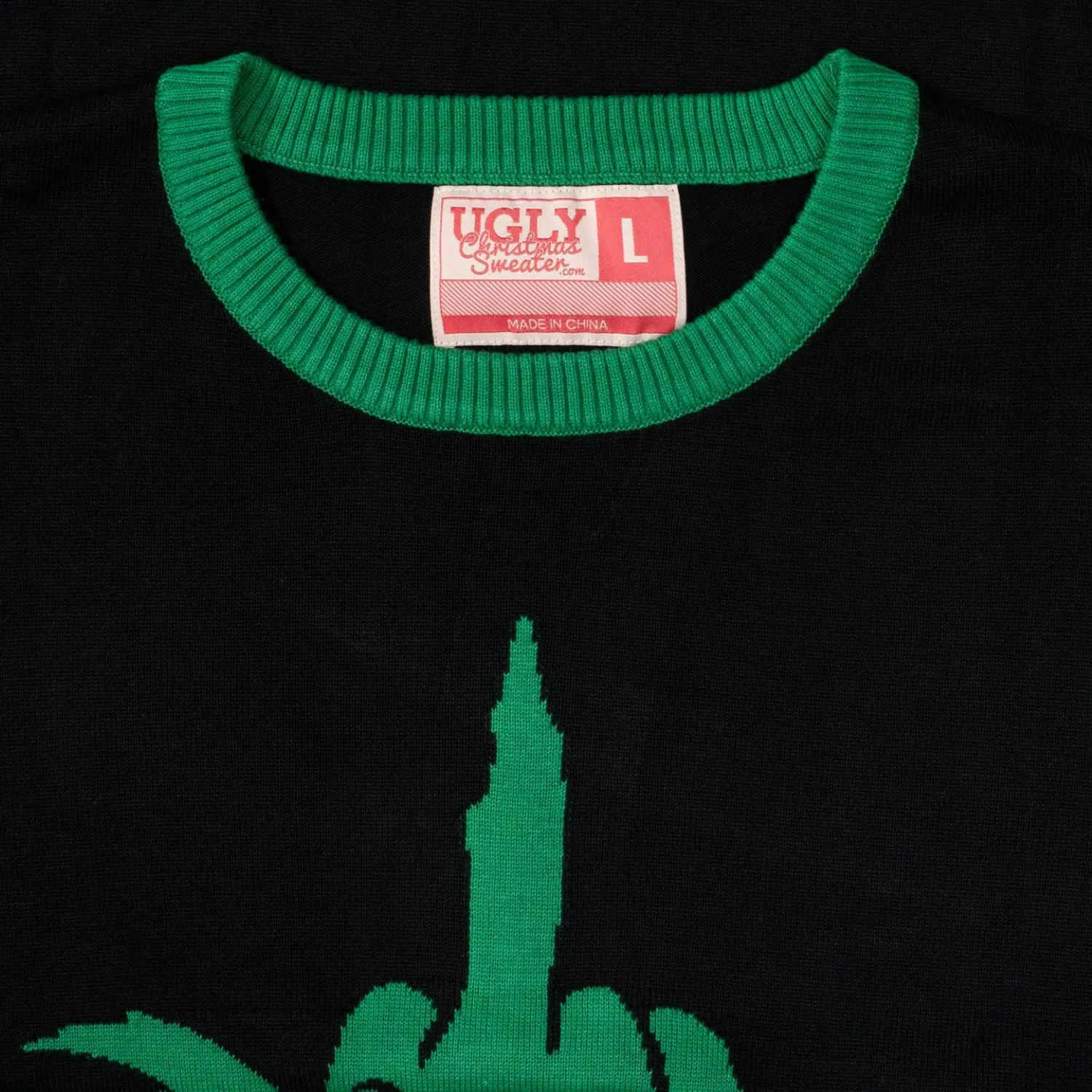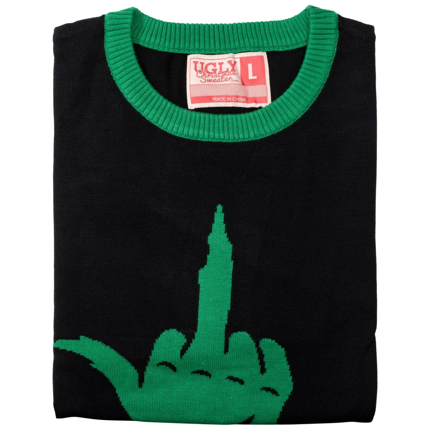 Designed for those who enjoy adding humor to their seasonal style, this sweater features a mischievous green monster giving the classic middle-finger gesture — a bold, hilarious twist on traditional holiday cheer.