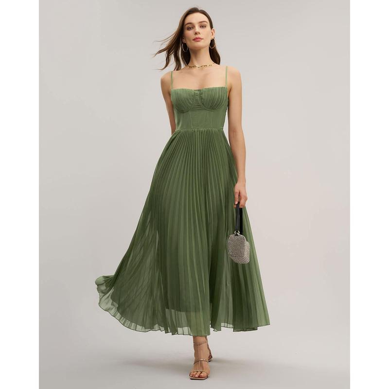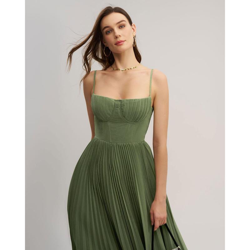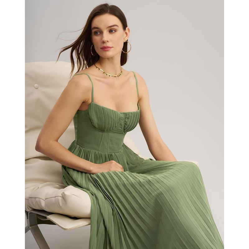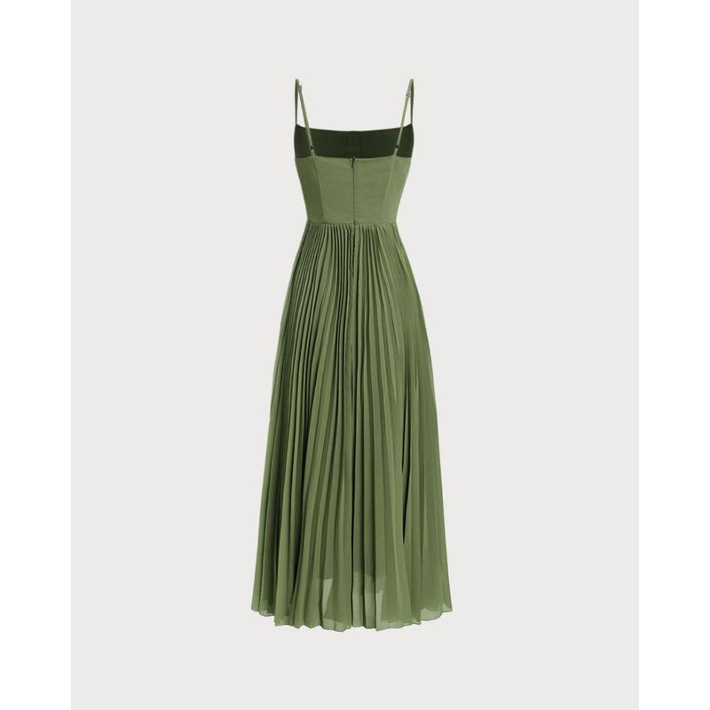 5. Green Sweetheart Neck Flowy Slip Maxi Dress