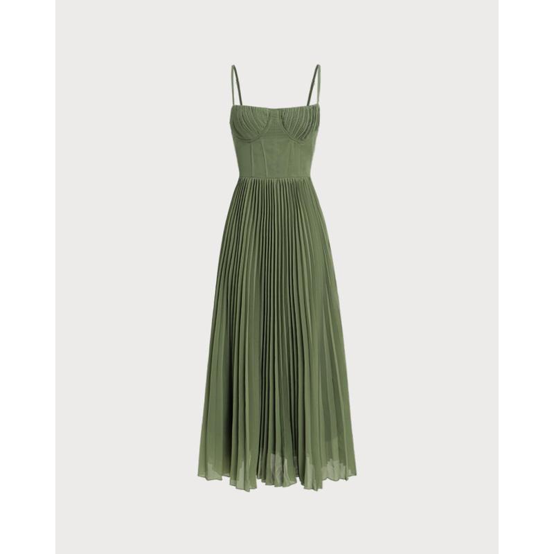 This gorgeous olive green dress would be perfect for a bridesmaid!! #bridesmaids #bridesmaidsdresses #weddingguestdress #greenbridesmaidsdresses #weddingattire