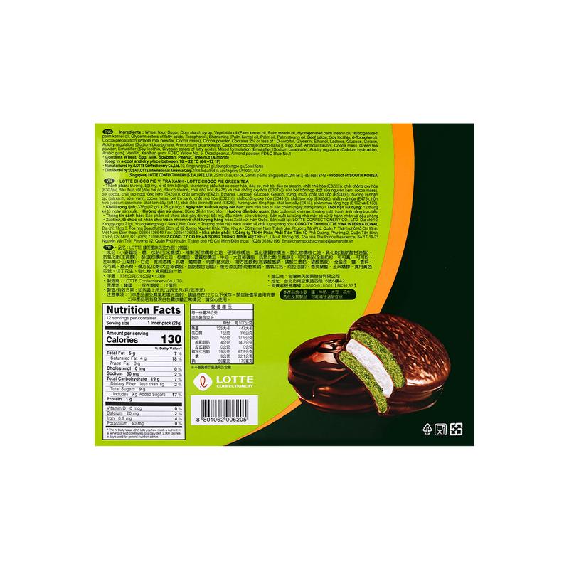 LOTTE Korea Green Tea Choco Pie - 12 Pieces, 11.85oz