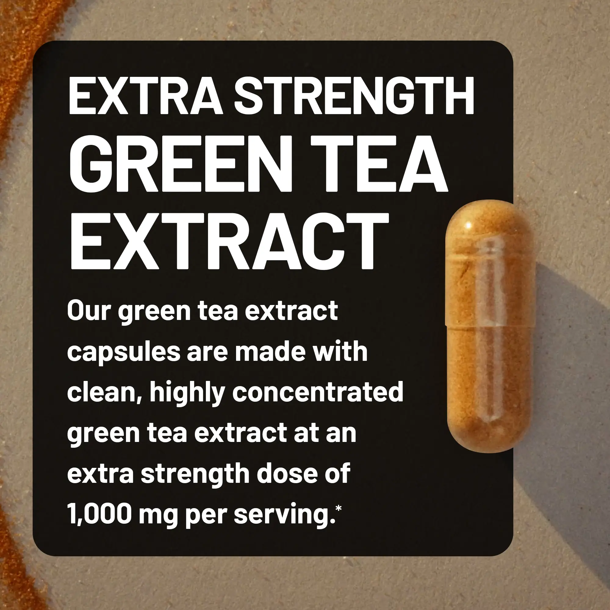 ·EXTRA STRENGTH GREEN TEA EXTRACT: Our green tea extract capsules are made with clean, highly concentrated green tea extract at an extra strength dose of 1000 mg of green tea extract per serving of 2 capsules.