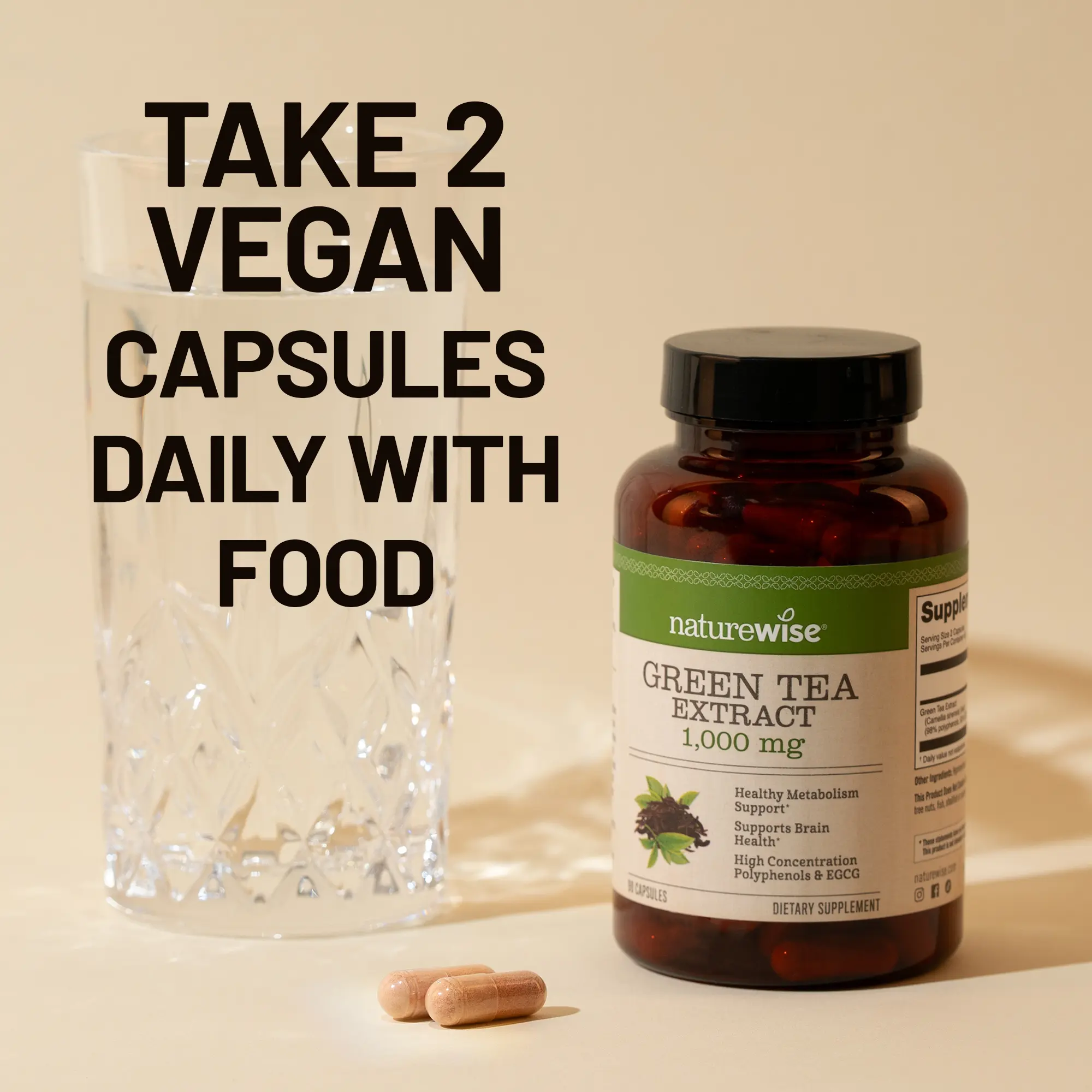 According to recent research, green tea leaves are rich in polyphenols such as flavanols, flavonoids, and phenolic acids. However, in their dry form, these antioxidants make up around 30% of their mass, or sometimes less. NatureWise Green Tea Extract is formulated to have 98% polyphenols in mass, EGCG being one of them. EGCG, or Epigallocatechin Gallate, is the most studied, beneficial catechin found in green tea. EGCG is known to support heart health, cellular health, and brain function.* With a potent dose of 1000 mg green tea extract per serving, NatureWise Green Tea capsules are plentiful in polyphenols that support cognitive function and overall cellular health.*