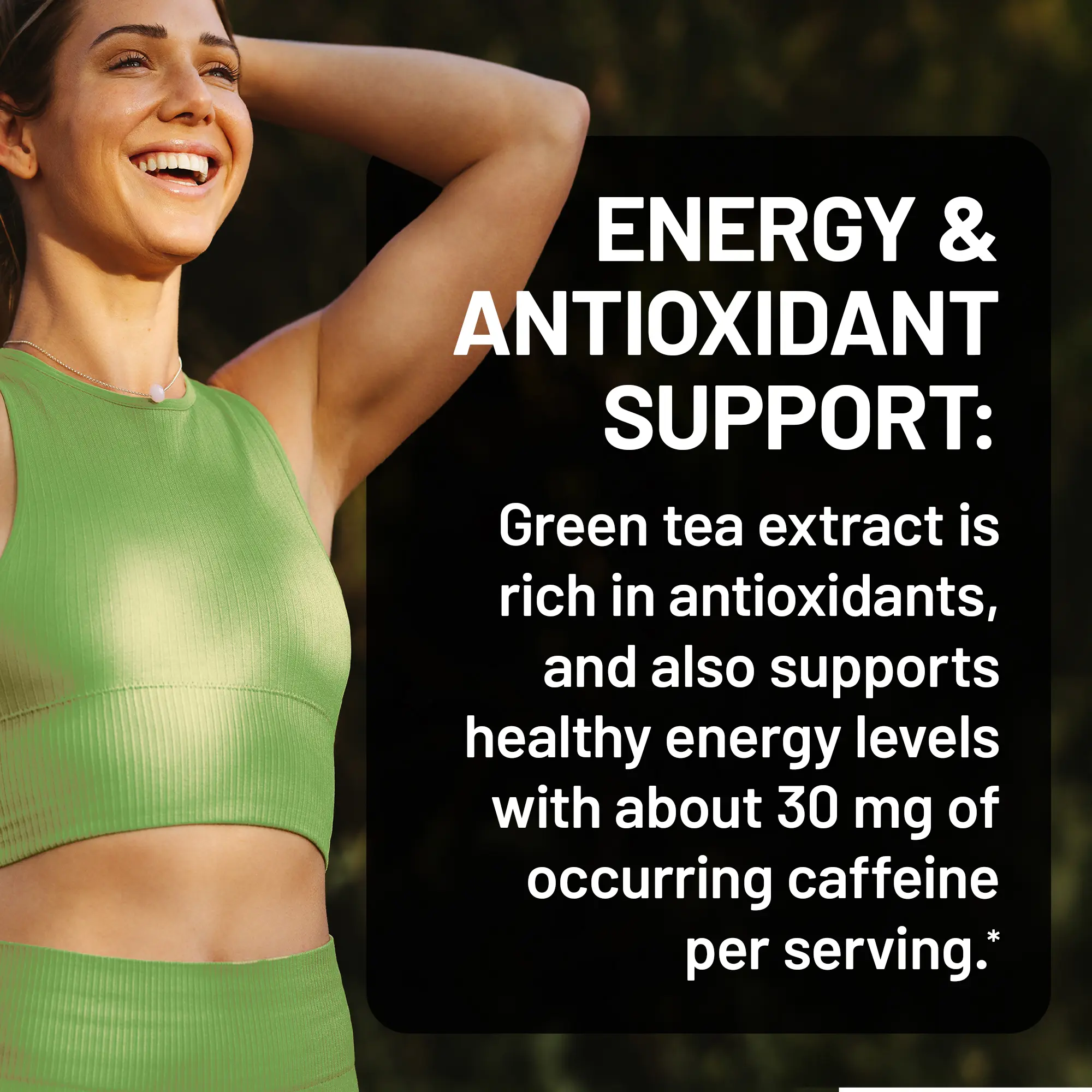 ·ENERGY & ANTIOXIDANT SUPPORT: Green tea extract is rich in antioxidants, and also supports healthy energy levels with about 30mg of occurring caffeine per serving.*