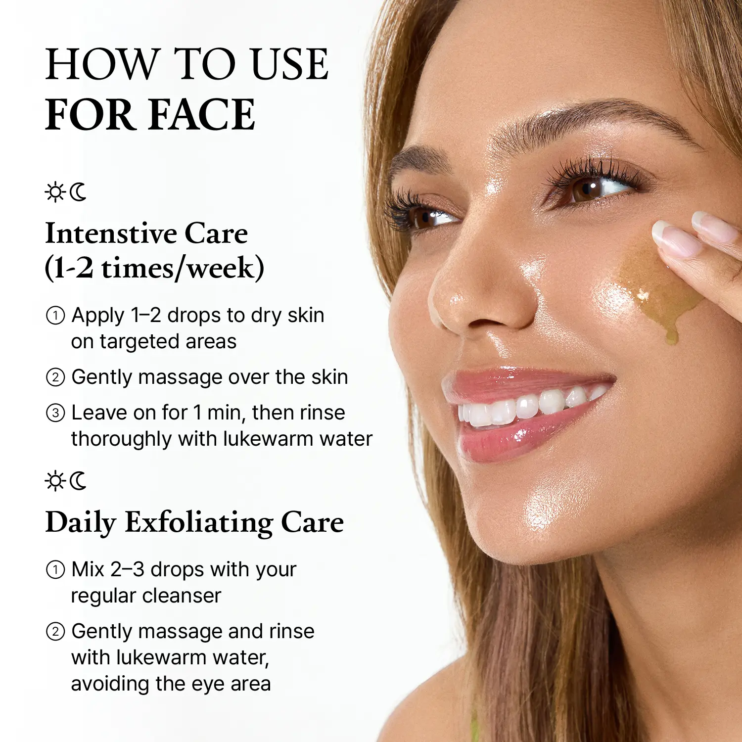 ·Mix 2–3 drops with your regular cleanser