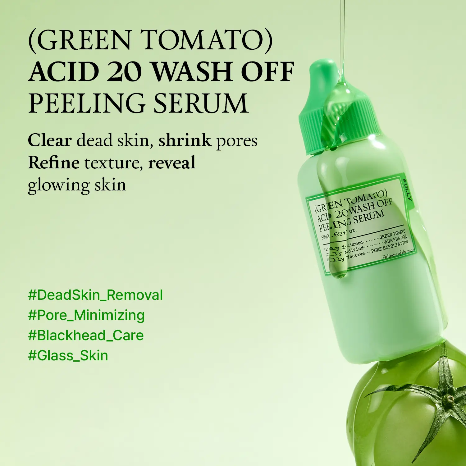 Green Tomato Acid 20 Wash-Off Peeling Serum – 1-Minute Pore & Glow Solution