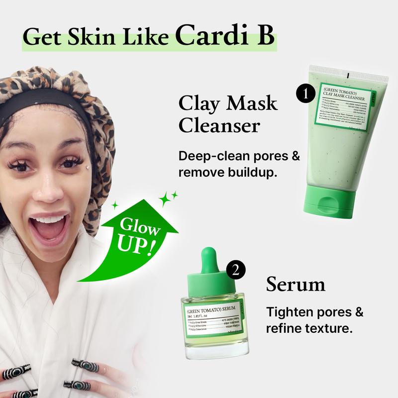 Green Tomato Basic Pore Care Routine Bundle(Clay Mask Cleanser + Serum)