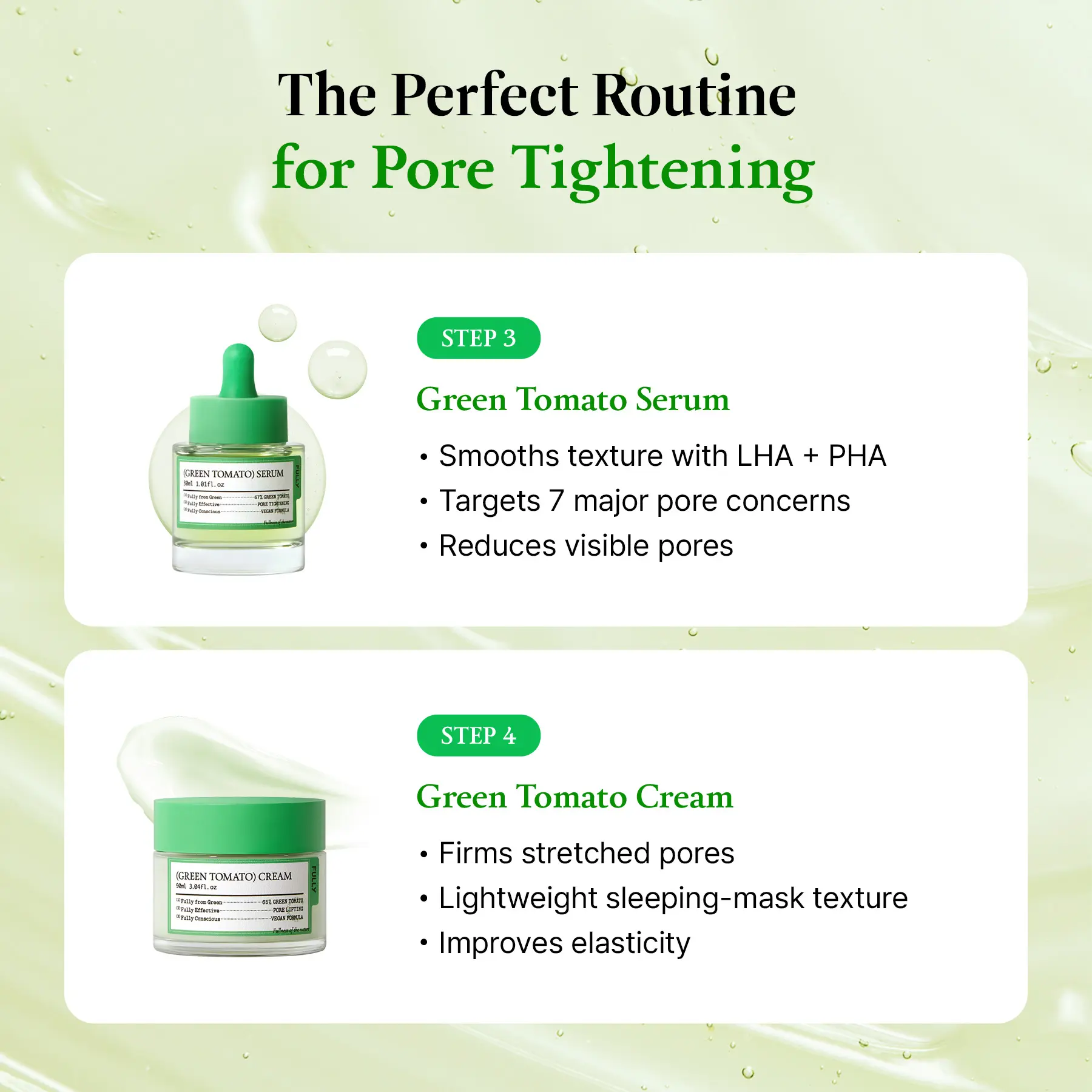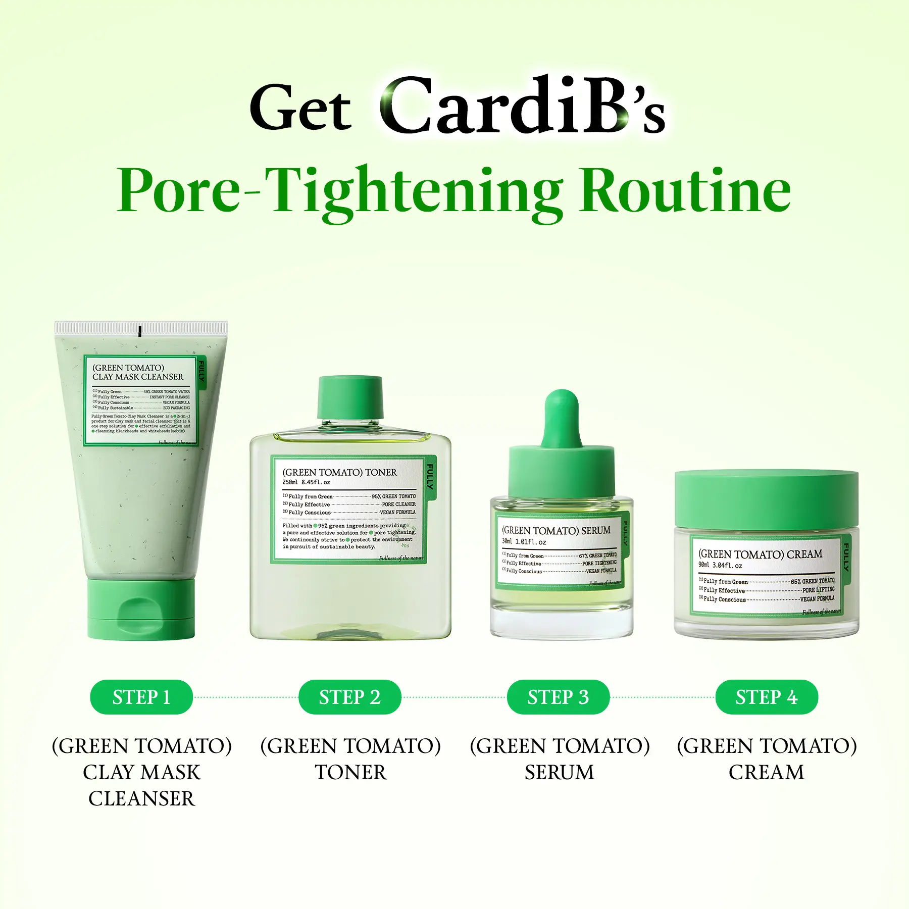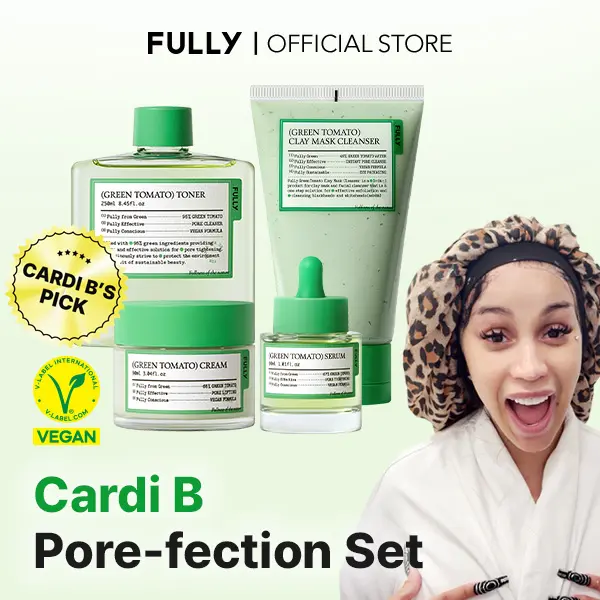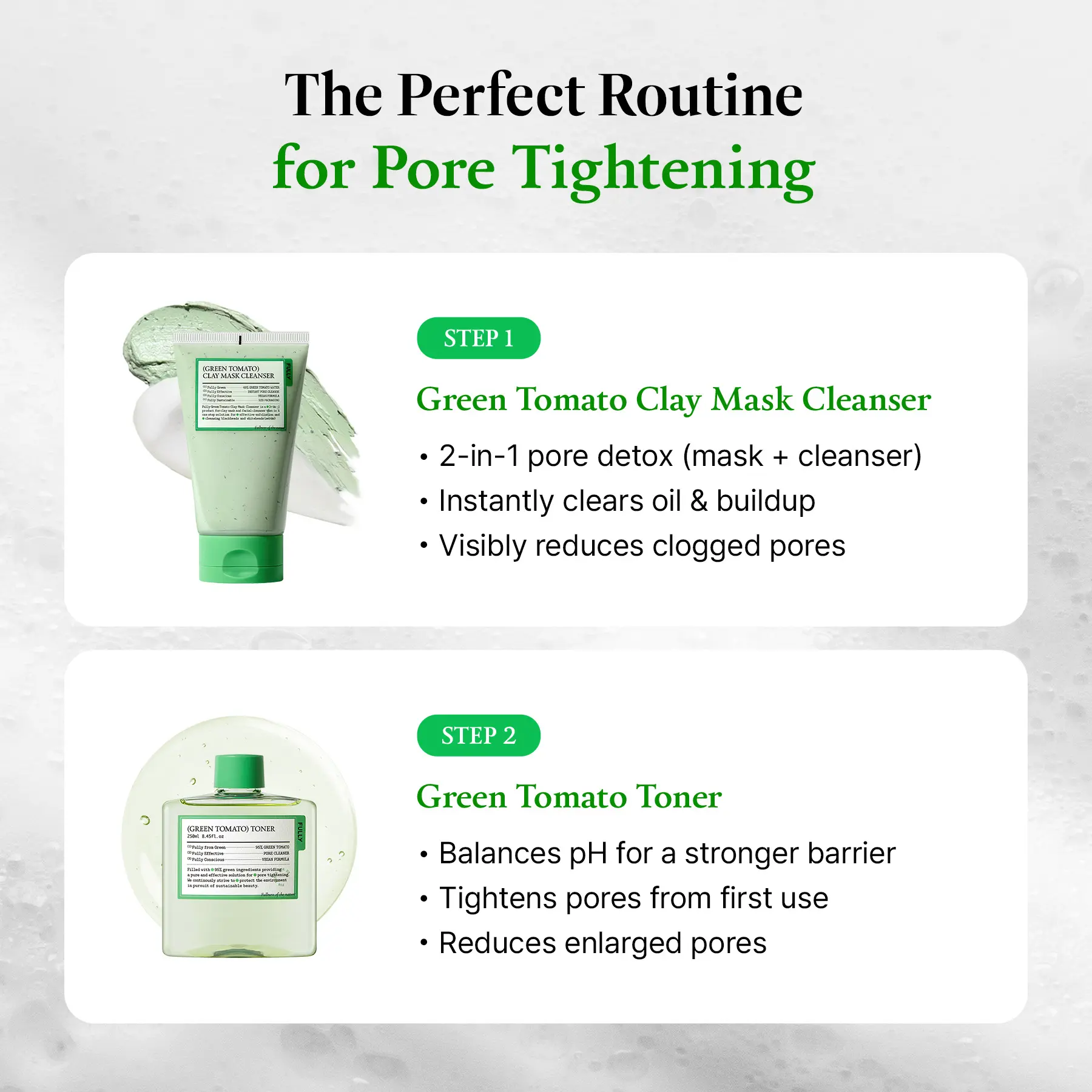 | Ingredients | [CLAY MASK CLEANSER] SOLANUM LYCOPERSICUM (TOMATO) FRUIT EXTRACT,MYRISTIC ACID,GLYCERIN,BENTONITE,KAOLIN,POTASSIUM HYDROXIDE,LAURIC ACID,TITANIUM DIOXIDE,ZEA MAYS (CORN) STARCH,PALMITIC ACID,BUTYLENE GLYCOL,STEARIC ACID,COCO-GLUCOSIDE,1,2-HEXANEDIOL,CENTELLA ASIATICA EXTRACT,FICUS CARICA (FIG) FRUIT EXTRACT,OENOTHERA BIENNIS (EVENING PRIMROSE) FLOWER EXTRACT,ULMUS DAVIDIANA ROOT EXTRACT,PINUS PALUSTRIS LEAF EXTRACT,PUERARIA LOBATA ROOT EXTRACT,HYDROGENATED LECITHIN,MAGNESIUM ALUMINUM SILICATE,WATER,MENTHA ARVENSIS POWDER,HYDROXYACETOPHENONE,GLYCERYL STEARATE,DIPROPYLENE GLYCOL,ETHYLHEXYLGLYCERIN,DECYLENE GLYCOL,SODIUM COCOYL GLYCINATE,SODIUM PHYTATE,BETA-GLUCAN,CERAMIDE NP,MONTMORILLONITE,ILLITE,CANADIAN COLLOIDAL CLAY,HECTORITE,CHROMIUM OXIDE GREENS [TONER] SOLANUM LYCOPERSICUM (TOMATO) FRUIT EXTRACT,BUTYLENE GLYCOL,1,2-HEXANEDIOL,HYDROXYACETOPHENONE [SERUM] SOLANUM LYCOPERSICUM (TOMATO) FRUIT EXTRACT,BUTYLENE GLYCOL,GLYCERIN,PROPANEDIOL,1,2-HEXANEDIOL,WATER,BIFIDA FERMENT LYSATE,NIACINAMIDE,METHYLPROPANEDIOL,CENTELLA ASIATICA EXTRACT,FICUS CARICA (FIG) FRUIT EXTRACT,POTENTILLA ANSERINA EXTRACT,AVENA SATIVA (OAT) KERNEL EXTRACT,CYNARA SCOLYMUS (ARTICHOKE) LEAF EXTRACT,OENOTHERA BIENNIS (EVENING PRIMROSE) FLOWER EXTRACT,ULMUS DAVIDIANA ROOT EXTRACT,PINUS PALUSTRIS LEAF EXTRACT,PUERARIA LOBATA ROOT EXTRACT,MELIA AZADIRACHTA LEAF EXTRACT,MELIA AZADIRACHTA FLOWER EXTRACT,THEOBROMA CACAO (COCOA) SEED EXTRACT,DIOSPYROS KAKI LEAF EXTRACT,VITIS VINIFERA (GRAPE) FRUIT EXTRACT,CARTHAMUS TINCTORIUS (SAFFLOWER) FLOWER EXTRACT,COFFEA ARABICA (COFFEE) SEED EXTRACT,POLYGONUM CUSPIDATUM ROOT EXTRACT,CAMELLIA SINENSIS LEAF EXTRACT,CASTANEA CRENATA (CHESTNUT) SHELL EXTRACT,ZANTHOXYLUM PIPERITUM FRUIT EXTRACT,CAMELLIA SINENSIS LEAF WATER,HYDROGENATED LECITHIN,ALCOHOL DENAT.,CARBOMER,AMMONIUM ACRYLOYLDIMETHYLTAURATE/VP COPOLYMER,HYDROXYACETOPHENONE,GLYCERYL POLYMETHACRYLATE,TROMETHAMINE,ETHYLHEXYLGLYCERIN,GLUCONOLACTONE,XANTHAN GUM,ADENOSINE,POLYQUATERNIUM-51,DISODIUM EDTA,BETA-GLUC |