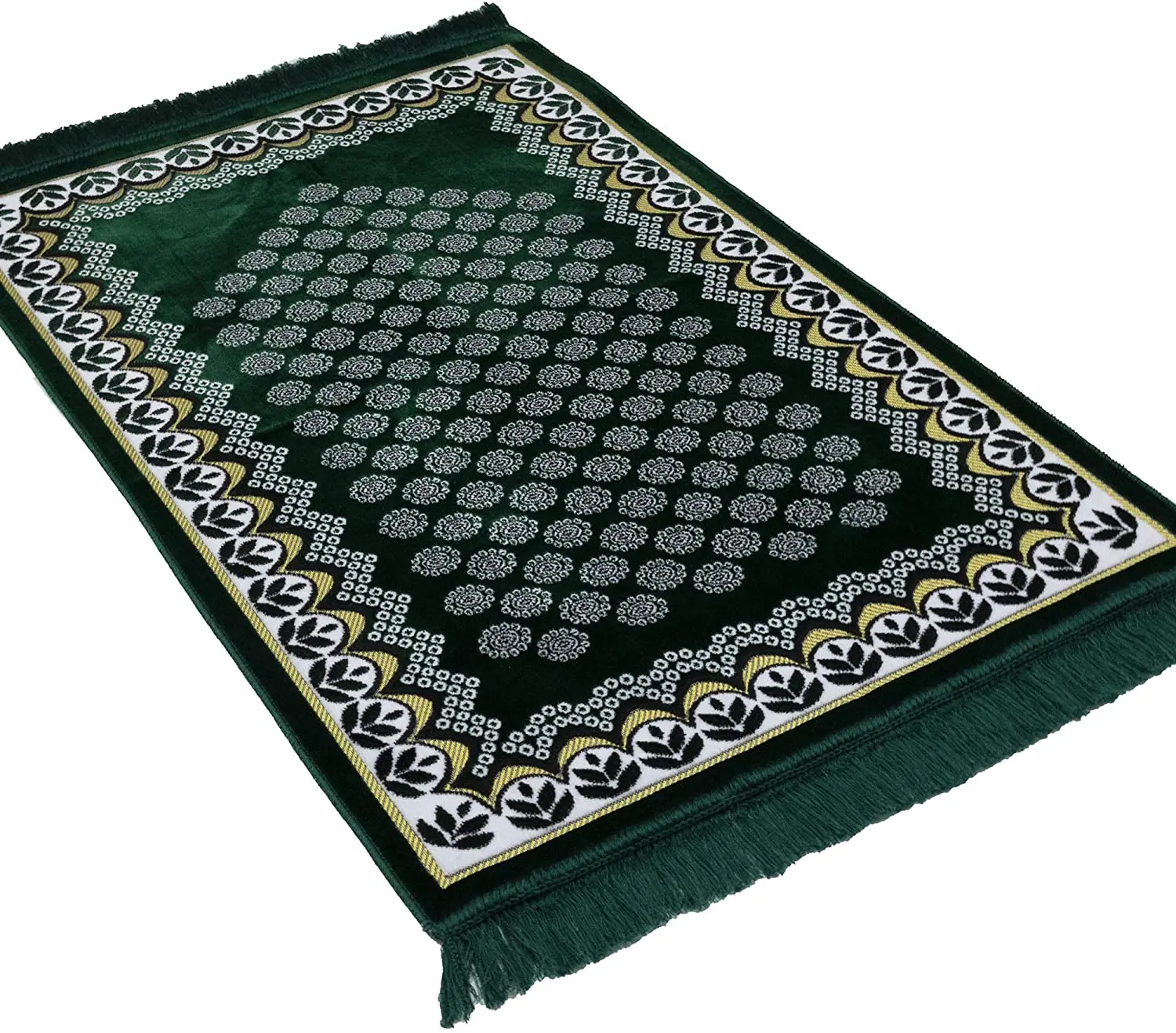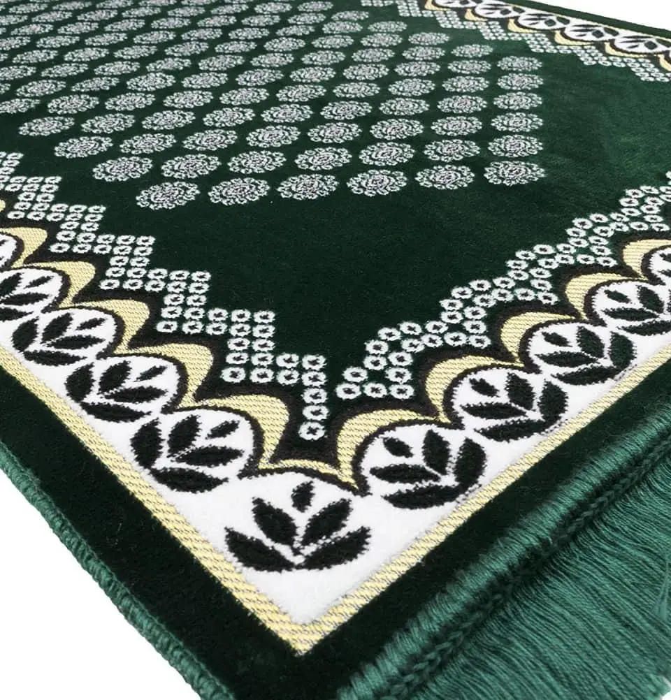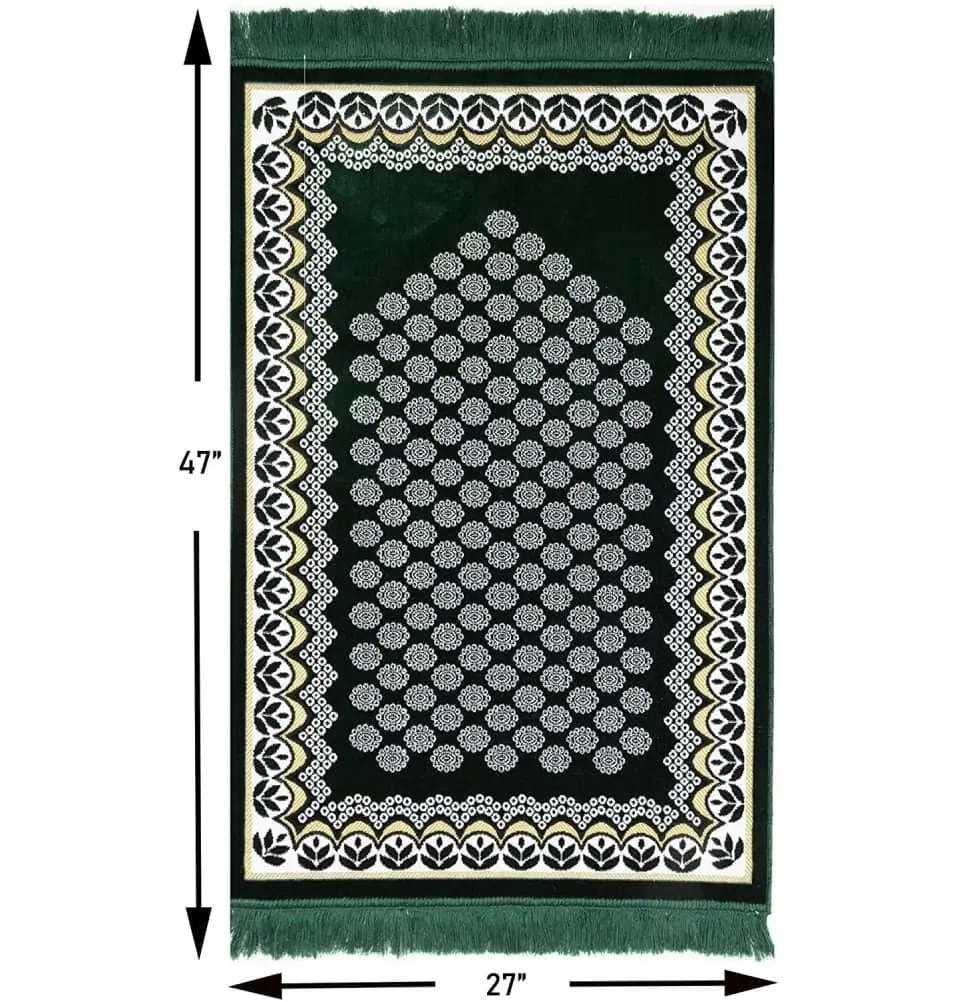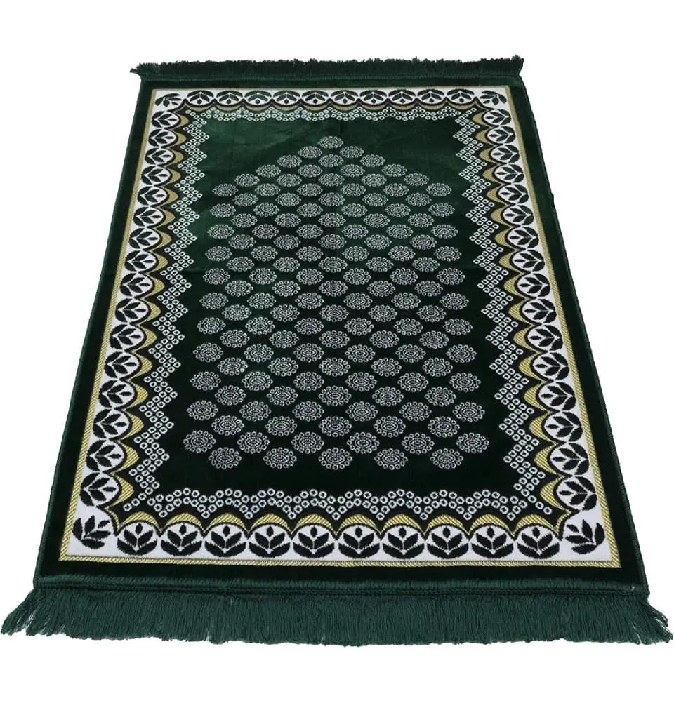 Velvet Floral Daisy Arch Islamic Prayer Rug - Green
