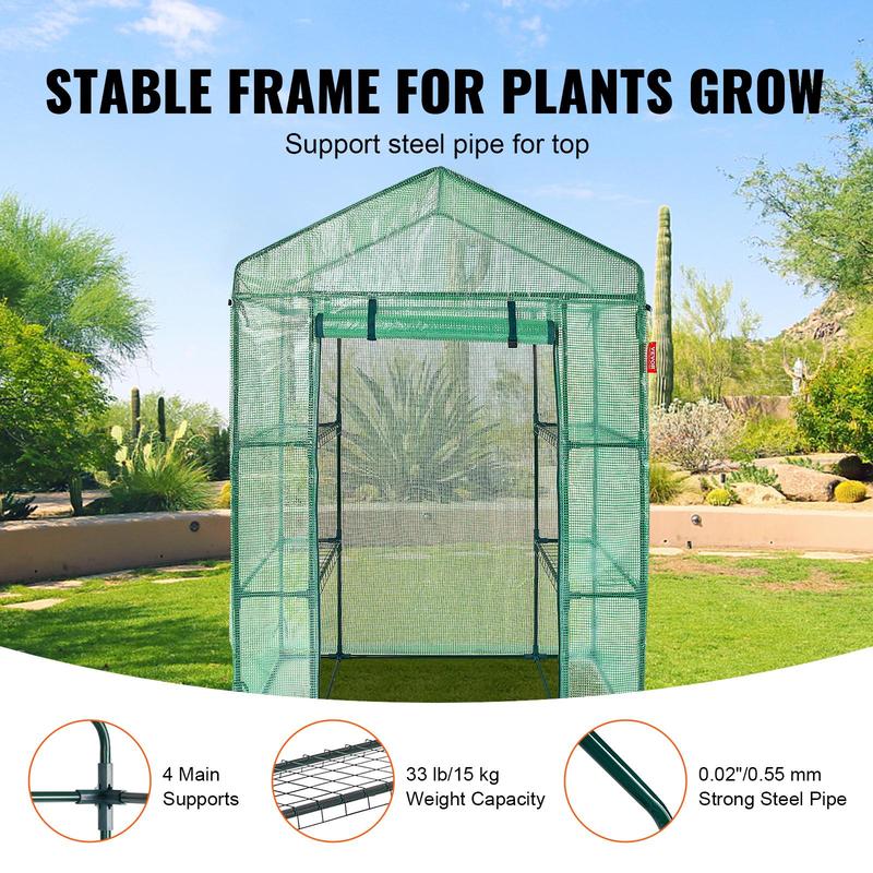 VEVOR Walk-in Green House, 4.6 x 2.4 x 6.7 ft, Greenhouse with Shelves, High Strength PE Cover with Doors, Windows and Steel Frame, Set Up in Minutes, for Planting and Storage