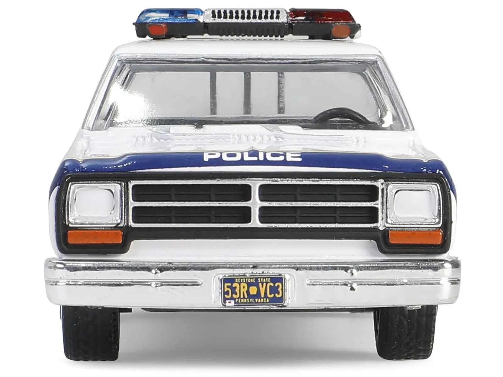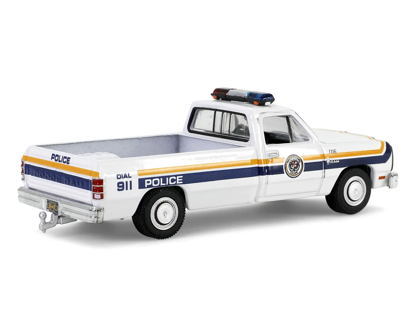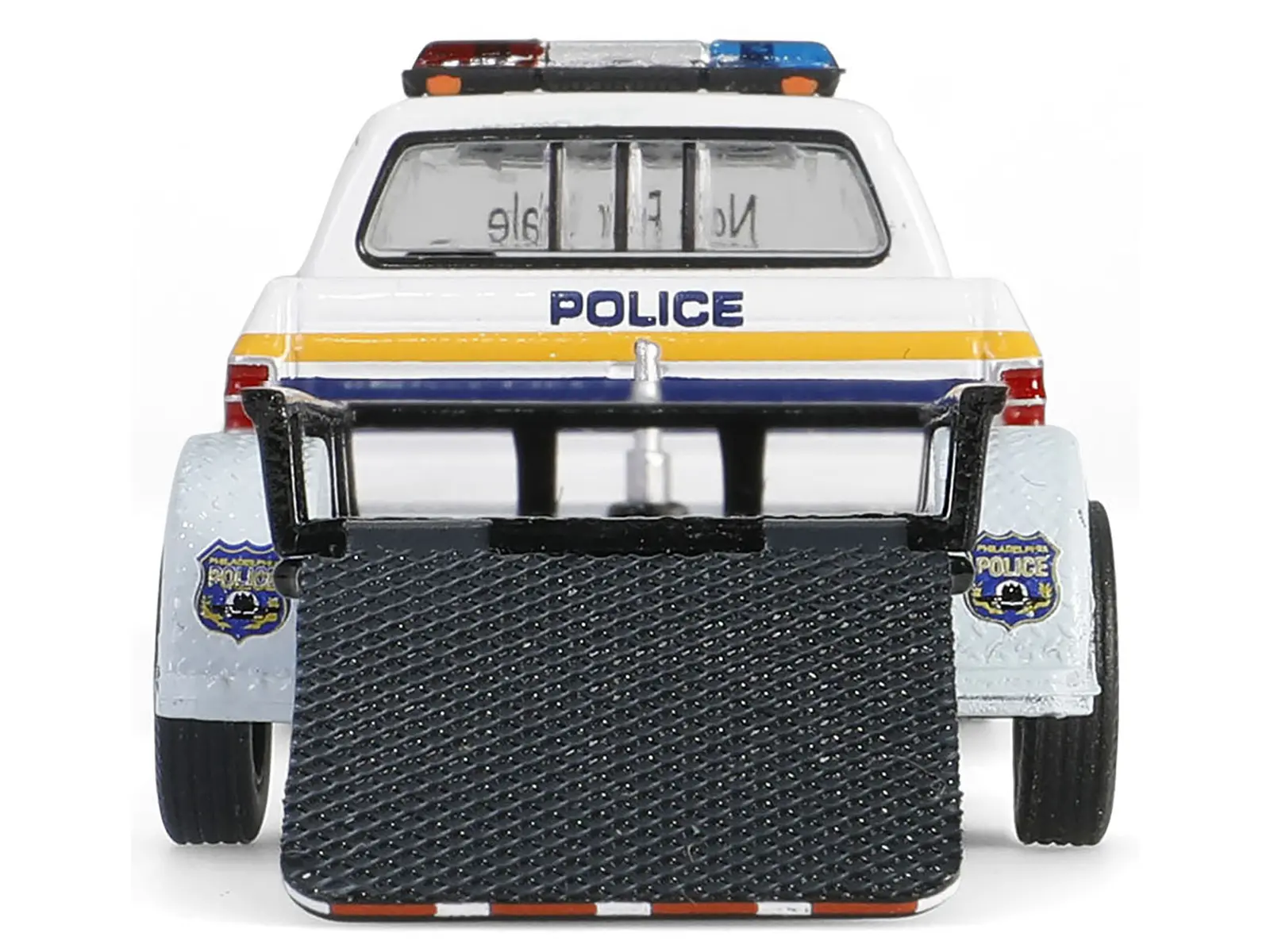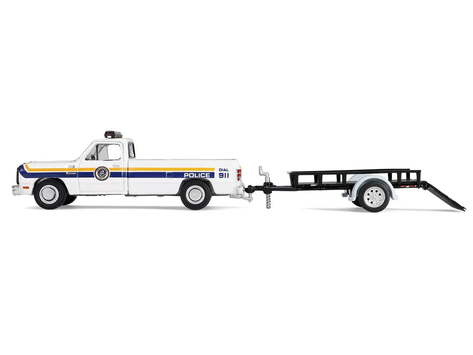 Brand new 1/64 scale diecast car models of 1990 Dodge Ram D250 Pickup Truck "Philadelphia, PA Police Department" White with Stripes and Utility Trailer "Hot Pursuit Hitch & Tow" Series 1 die cast model cars by Greenlight.