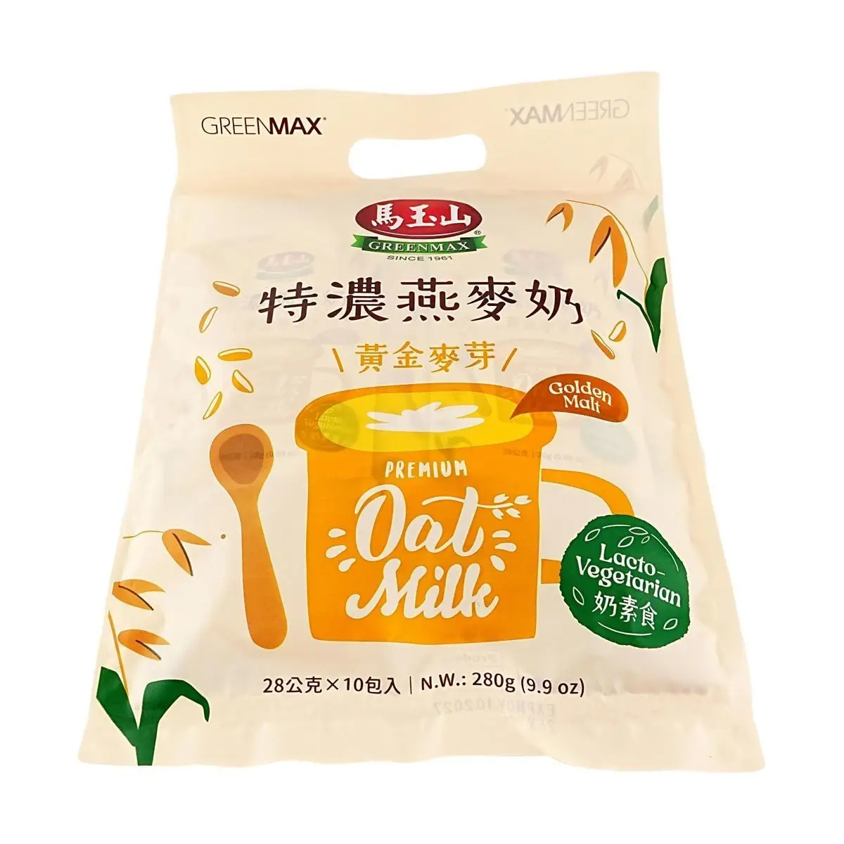 GREENMAX Taiwan Concentrated Oat Milk, Golden Malt Flavor, 10 Sachets, 280g - Rich & Creamy Breakfast Drink