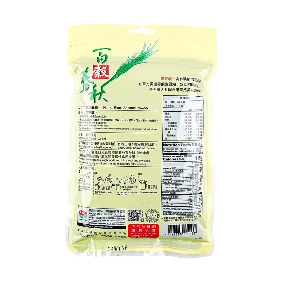 GREENMAX Taiwan Pure Black Sesame Powder 300g - Nutrient-Rich Superfood for Smoothies and Baking