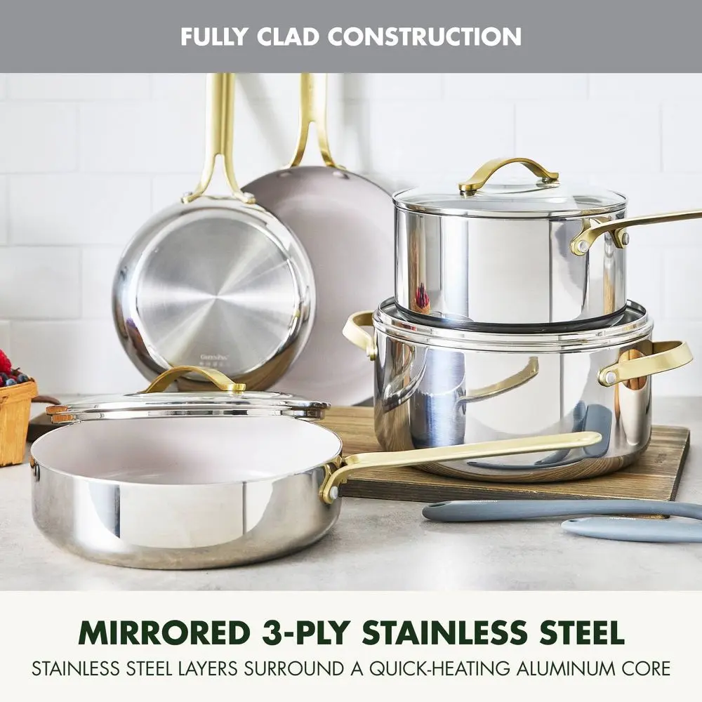 •MIRRORED 3-PLY STAINLESS STEEL: Fully clad with two layers of stainless steel surrounded by a quick-heating aluminum core